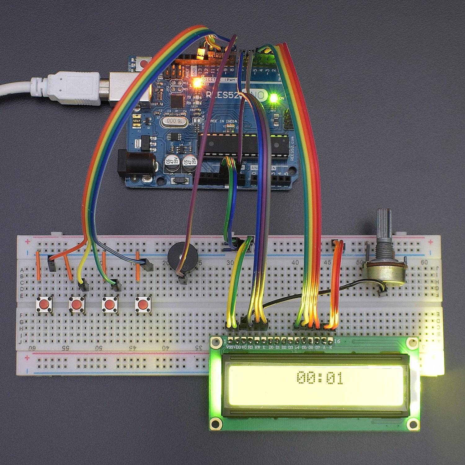 In this project, we make a Clock alarm using a push-button and a 16*2 LCD Display with Arduino Uno.