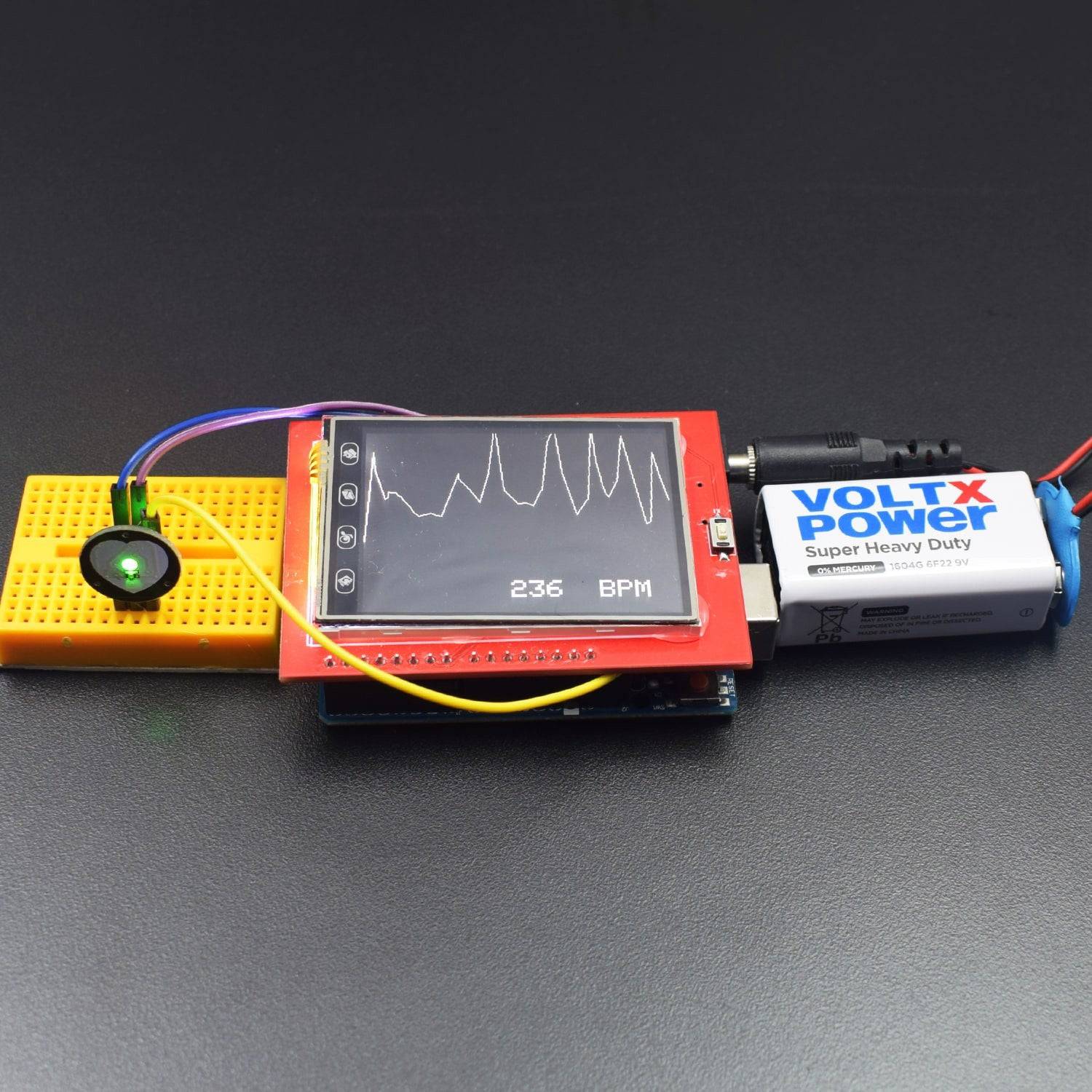 In this project, we have used the 2.8inch TFT screen to display the heart rate graph of a person as measured by the heart rate sensor.