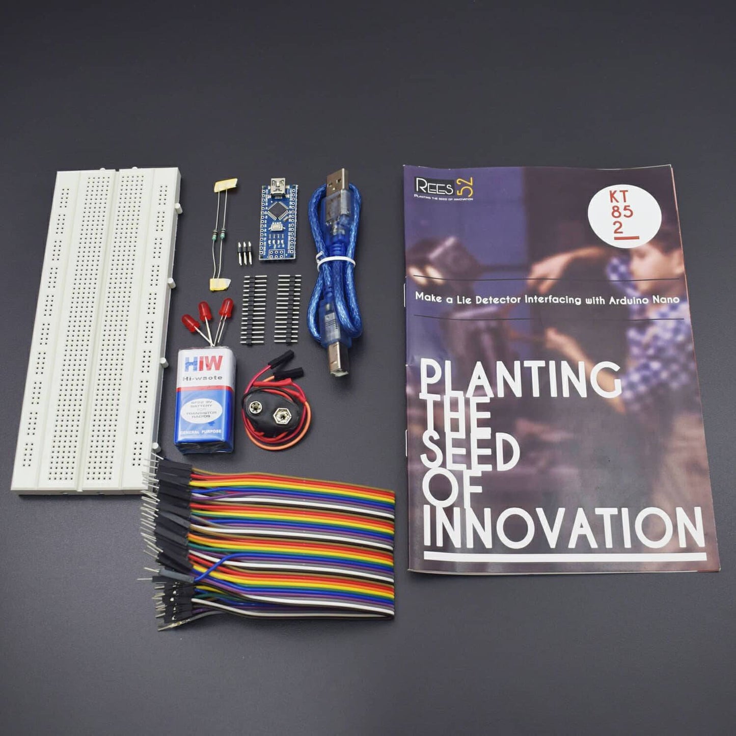 Welcome to the Arduino based Lie Detector which consists of Arduino Nano, LED’s and resistor. It must be made sure that connections are made in an appropriate manner as given in circuit connection.