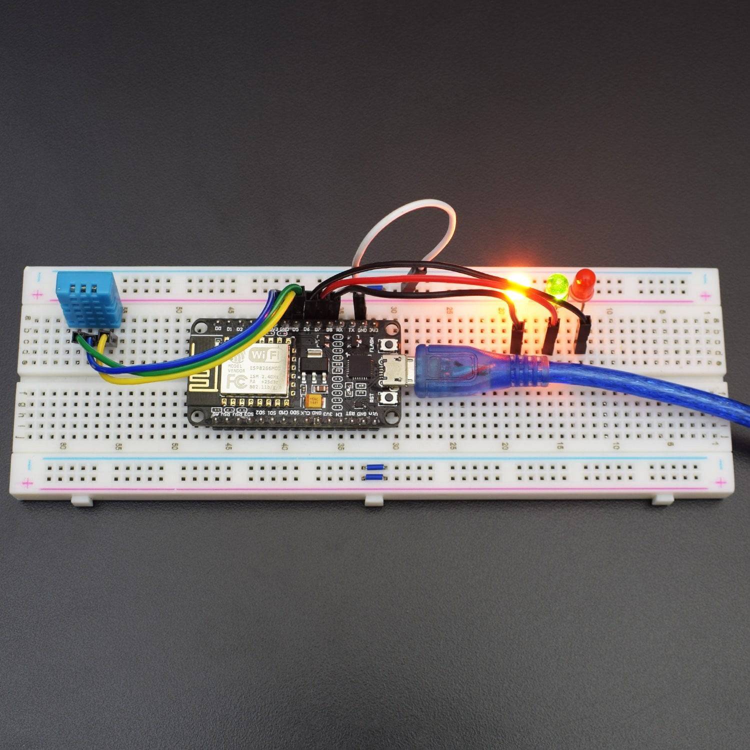 - Connect the positive leg of LED1 to the D8 pin of NodeMCU ESP8266-12e board.