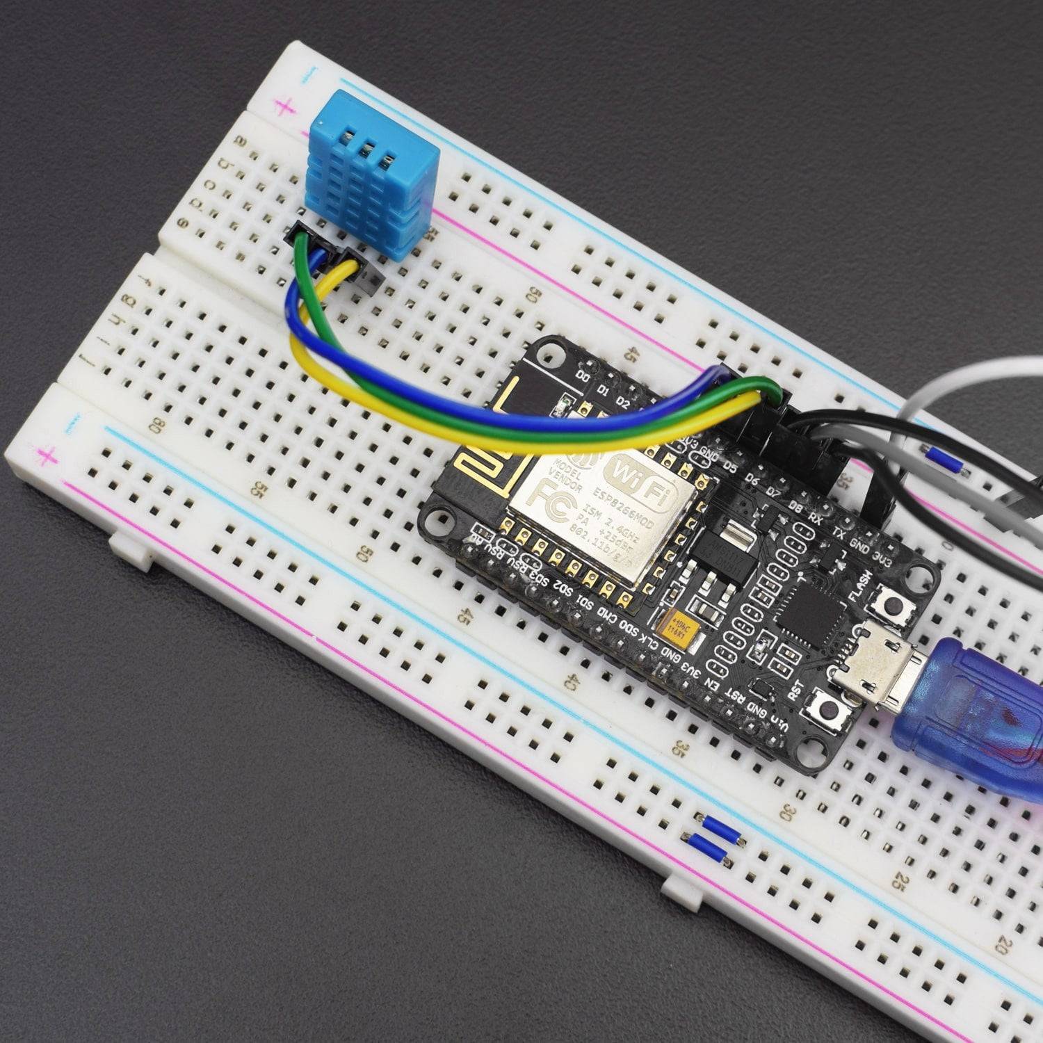 - Connect the “S” pin of the DHT11 module to pin D5 of the NodeMCU ESP8266-12e board.