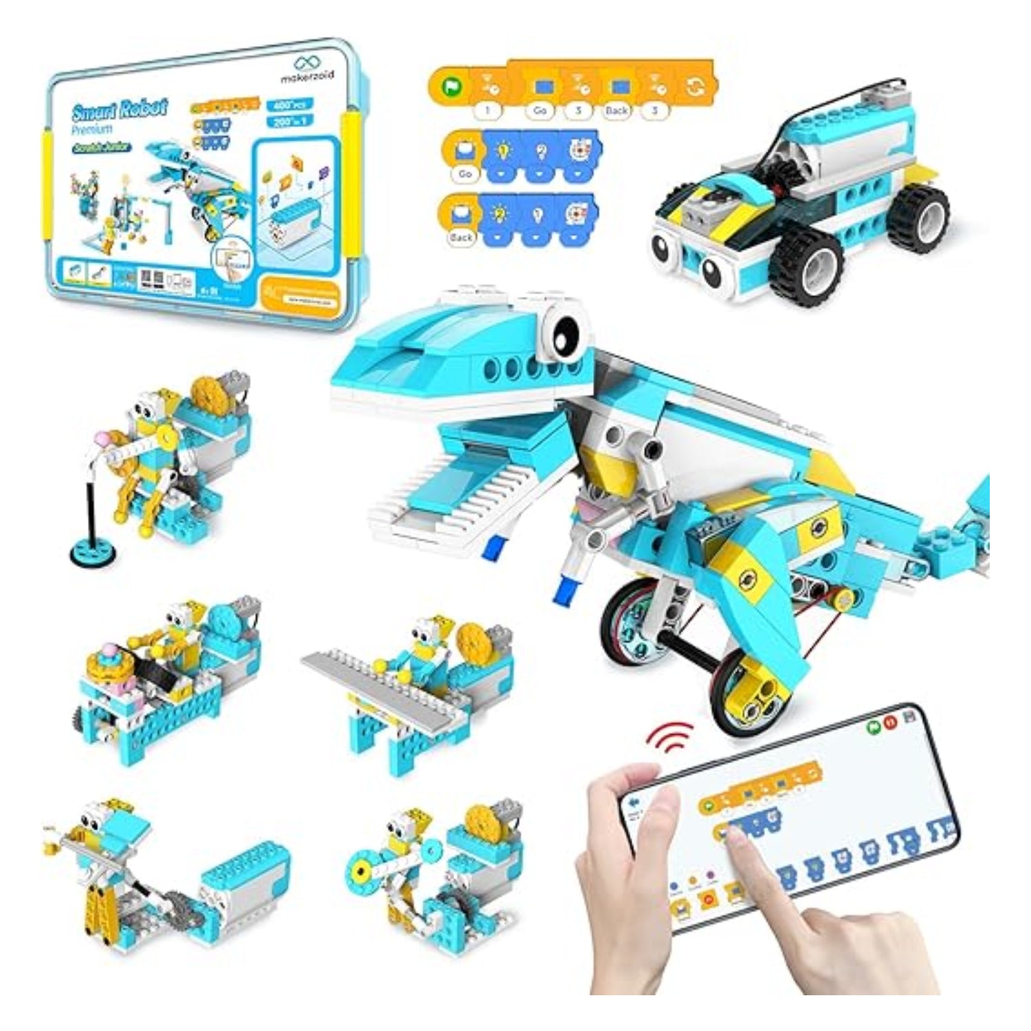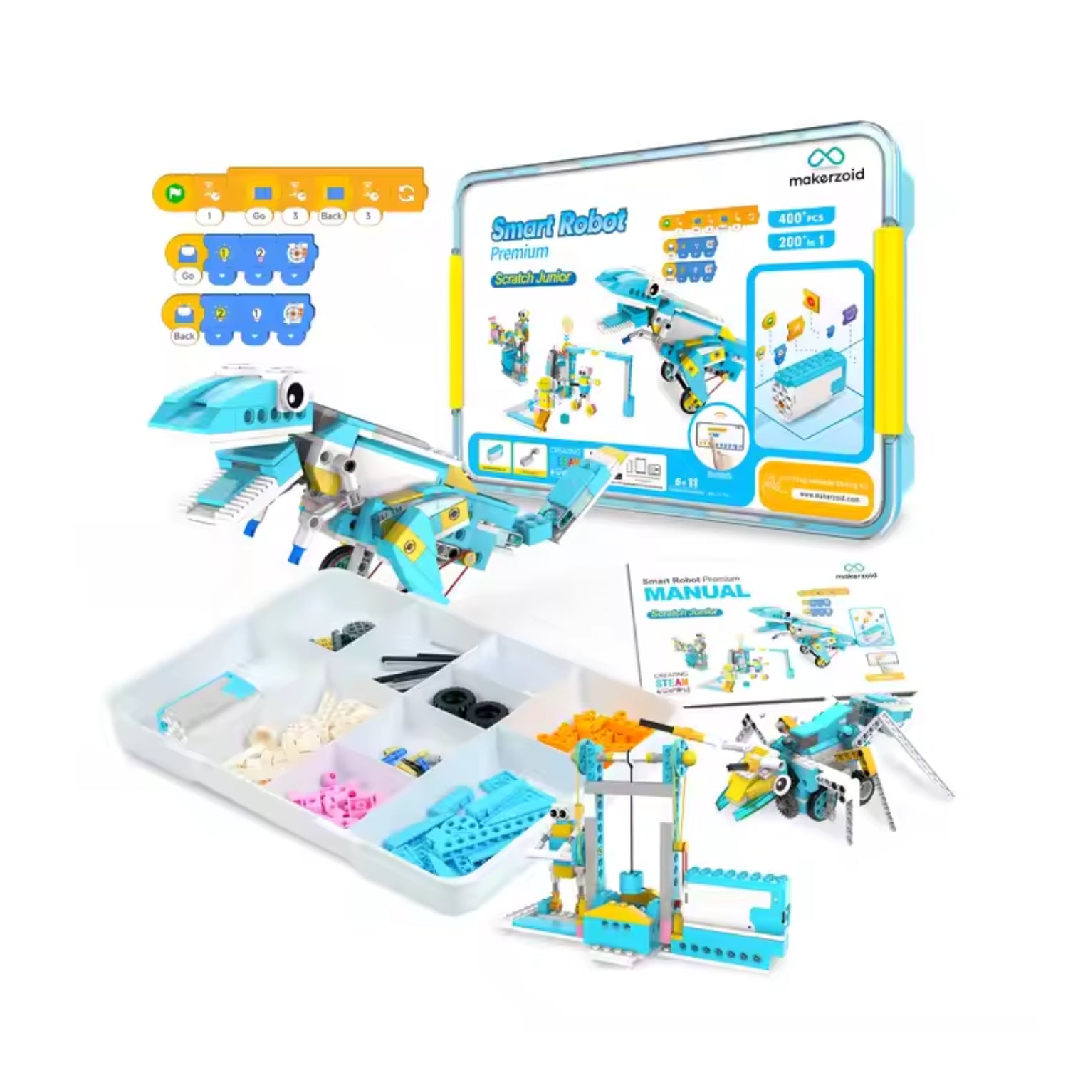1 x makerzoid 200-in-1 Coding Robot Kit Junior Programming Robot Toy Scratch Coding Educational Kit Remote Control Building Toys Educational Robotics Kits For Kids