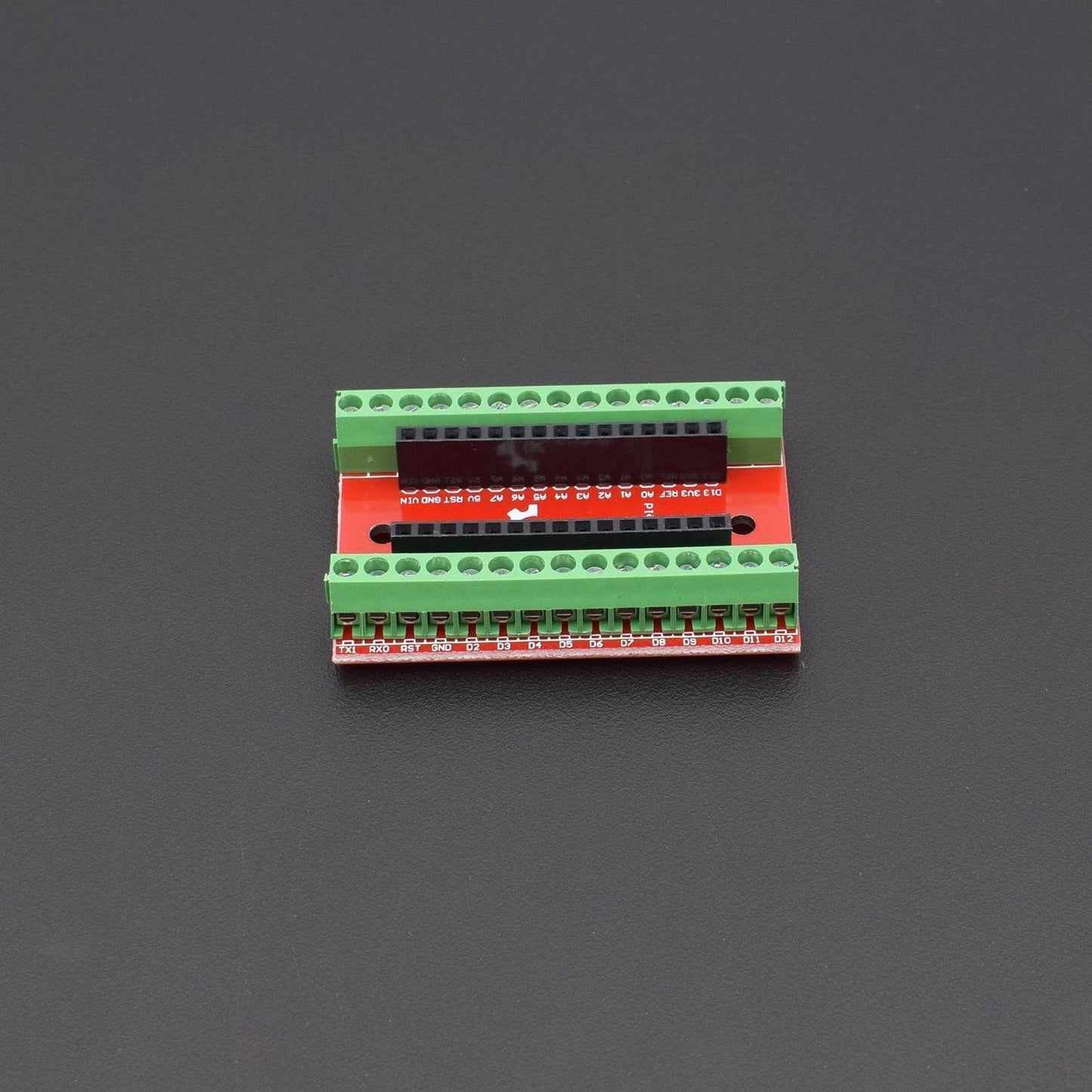 NANO IO Shield Expansion Board For Arduino Screw Terminals is a small simple Arduino Nano extension board, it will be the Nano all pins of derivation, convenient connection. IO Expansion Shield For Arduino Nano is specifically designed to facilitate an easy connection between Expansion Shield For Arduino Nano and many other devices. In essence, it expands for Arduino Nano controller to link those devices in a simple and trouble-free manner. This is a terminal adapter for the Arduino Nano. It labels for Arduino Nano version 3.0, however, you can still use this adapter for the older version(just have to remember that A0-A7 are in the reverse order). You can use this adapter to easily hook up Arduino Nano to an outside world via hook up wires.