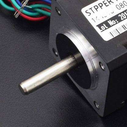 This bipolar Nema 14 stepper motor with a step angle of 1.8deg and a size of 35x35x34mm. It has 4 wires, and each phase draws 0.8A at 5.4V, with a holding torque 18Ncm (25.5oz. in). This stepper motor is very valuable in motion applications that require maximum torque at low speeds. This will aid in great positioning and precise control for devices like 3D printers, CNCs and more. The biggest advantage of a stepper motor over other normal DC motors is, you can achieve maximum torque at low operating speeds. This stepper motor can be mounted in both horizontal and vertical directions.