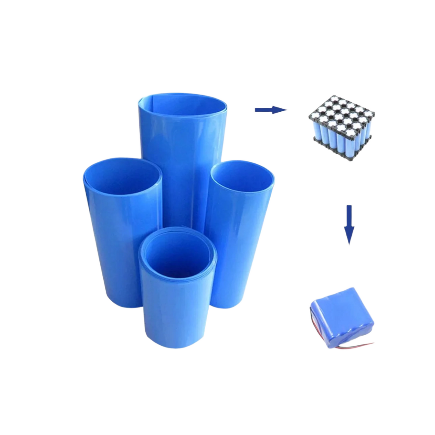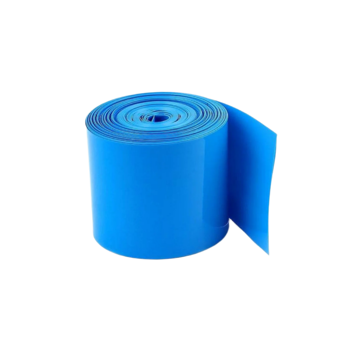 Blue PVC Heat Shrink Sleeve (350mm Flat Width, 1 Meter) for Lithium-ion Battery Packs. Provides essential protection, electrical insulation, mechanical strength, secure sealing, and strain relief for enhanced battery pack stability and longevity.