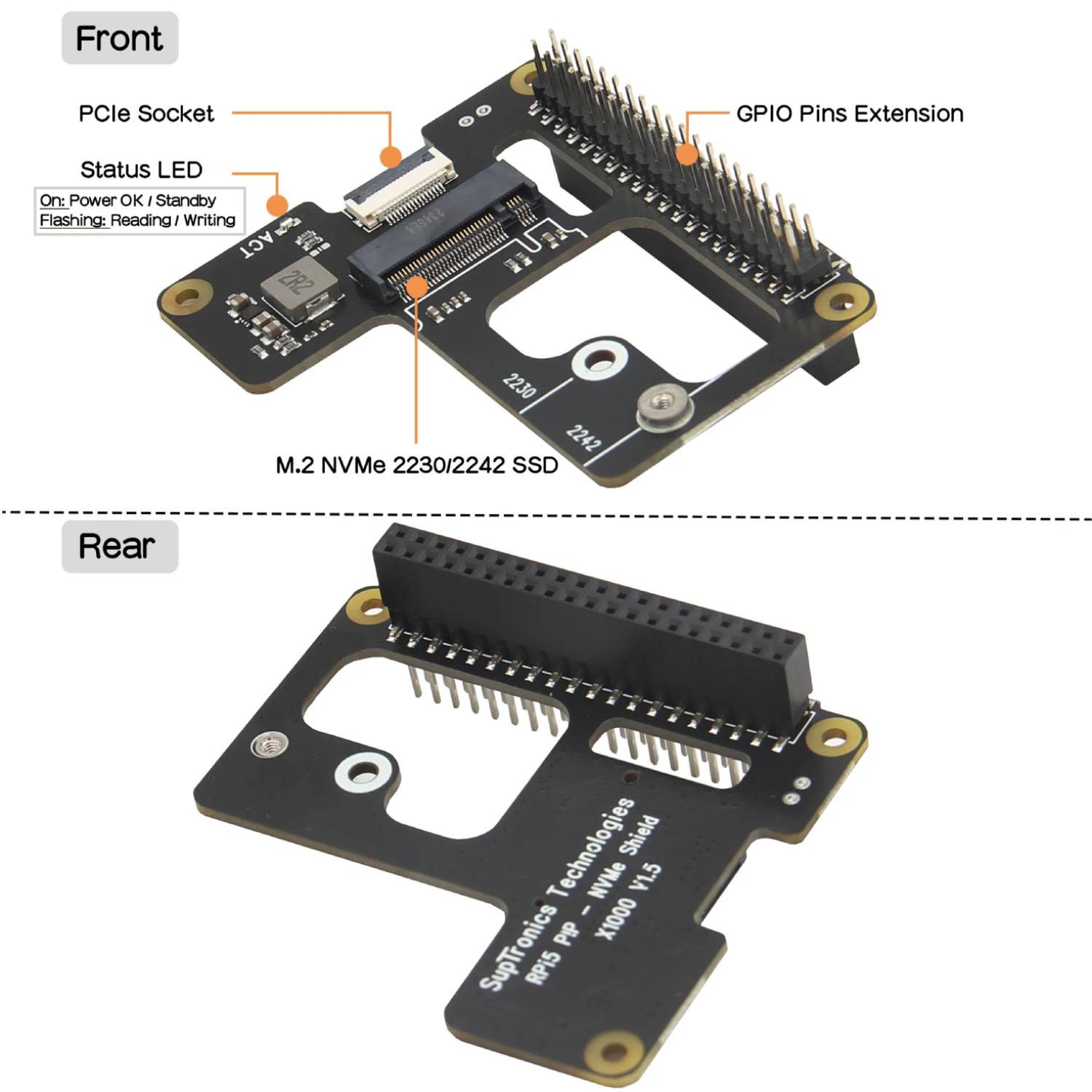 - Complete Mounting Kit: Provides spacers and screws for Raspberry Pi 5 PCIe to M.2 NVMe shields.