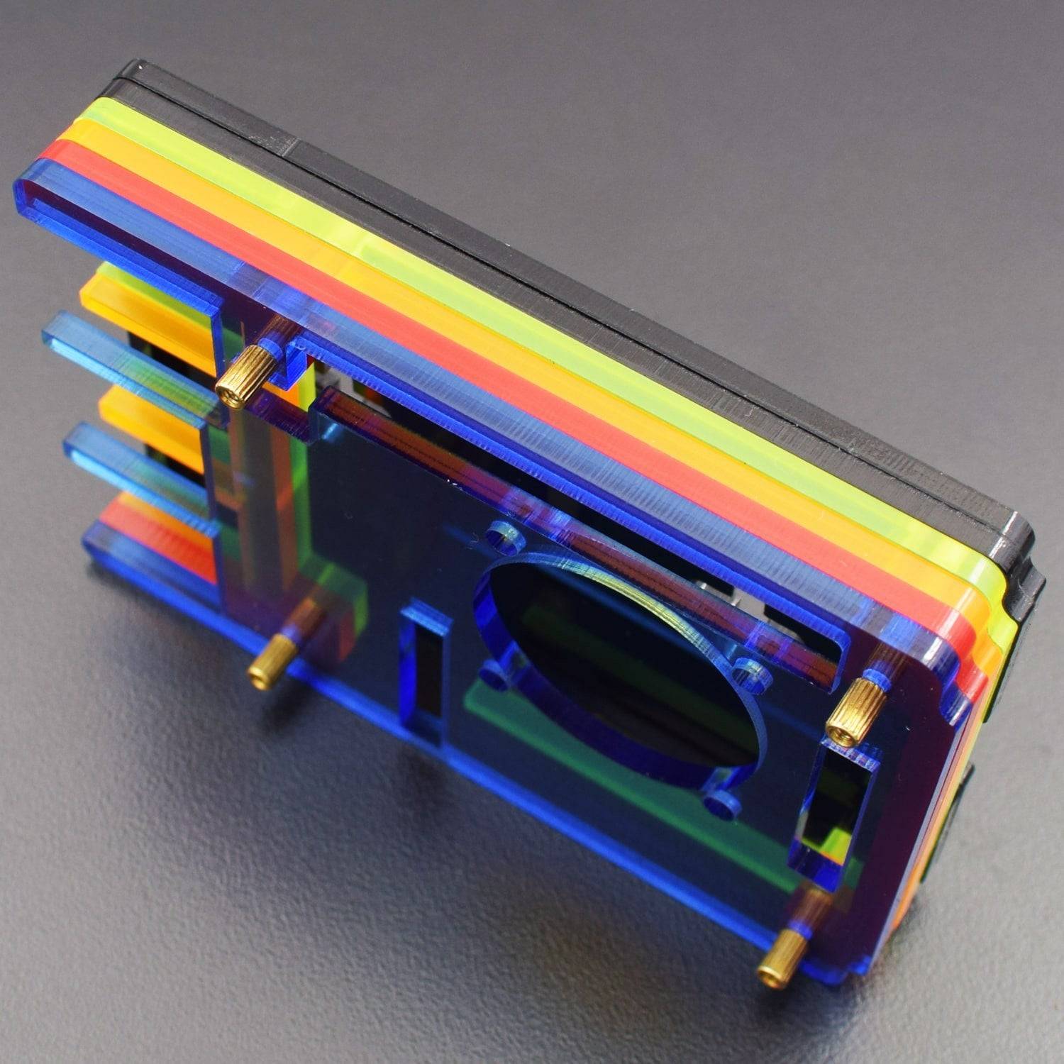 This is a Raspberry Pi 4 5-Layer Acrylic Case Rainbow (Type - A). This case is specially compatible with raspberry pi 4. It has clear top and base leave Raspberry Pi 4 visible. It has GPIO cut-out for make it easy to operate. And also it has handy laser-etched port labels. The Rainbow is a colorful case for your Raspberry Pi computer. It's crafted out of high quality acrylic layers with a transparent top and base. It's smooth, slick, and durable and because of its multi-color finish, stands out in almost any room.