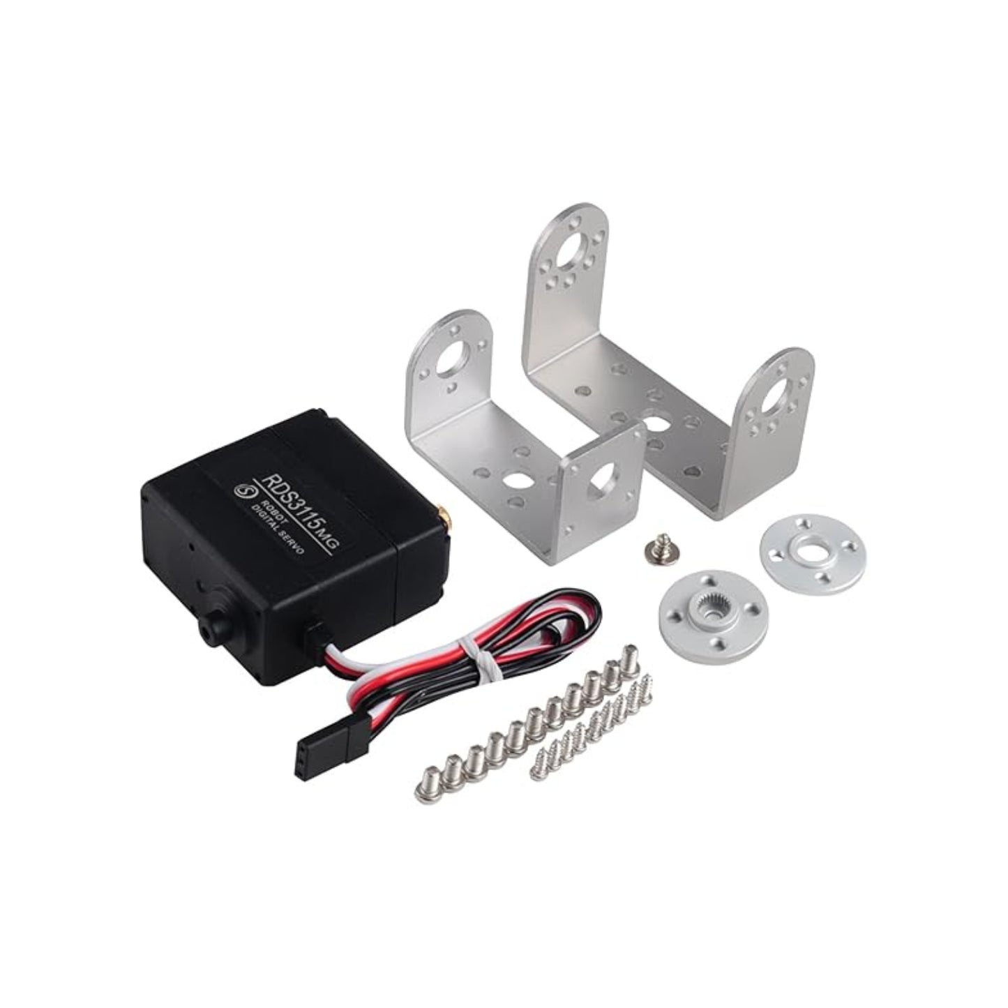 TheRDS3115MG 15KG Standard Servo Kit is a high-quality servo motor and generates torque up to 15kgs. Suitable for high torque applications like Robot Arms, Grippers, Controlling Flaps in RC Planes, Steering Control in RC Cars, or as a generic mechanical actuator.
