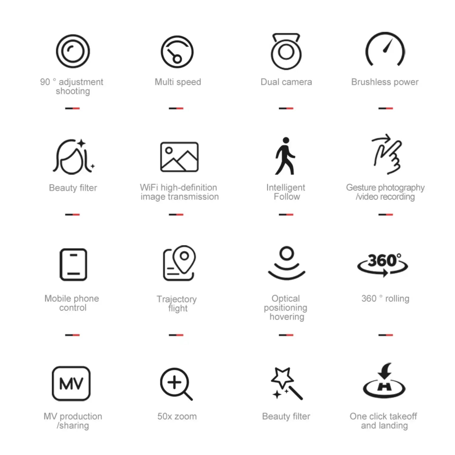 | Camera Features | 90° adjustable lens, gesture control, Wi-Fi FPV | 8K video recording, obstacle avoidance, gesture control, Wi-Fi FPV |