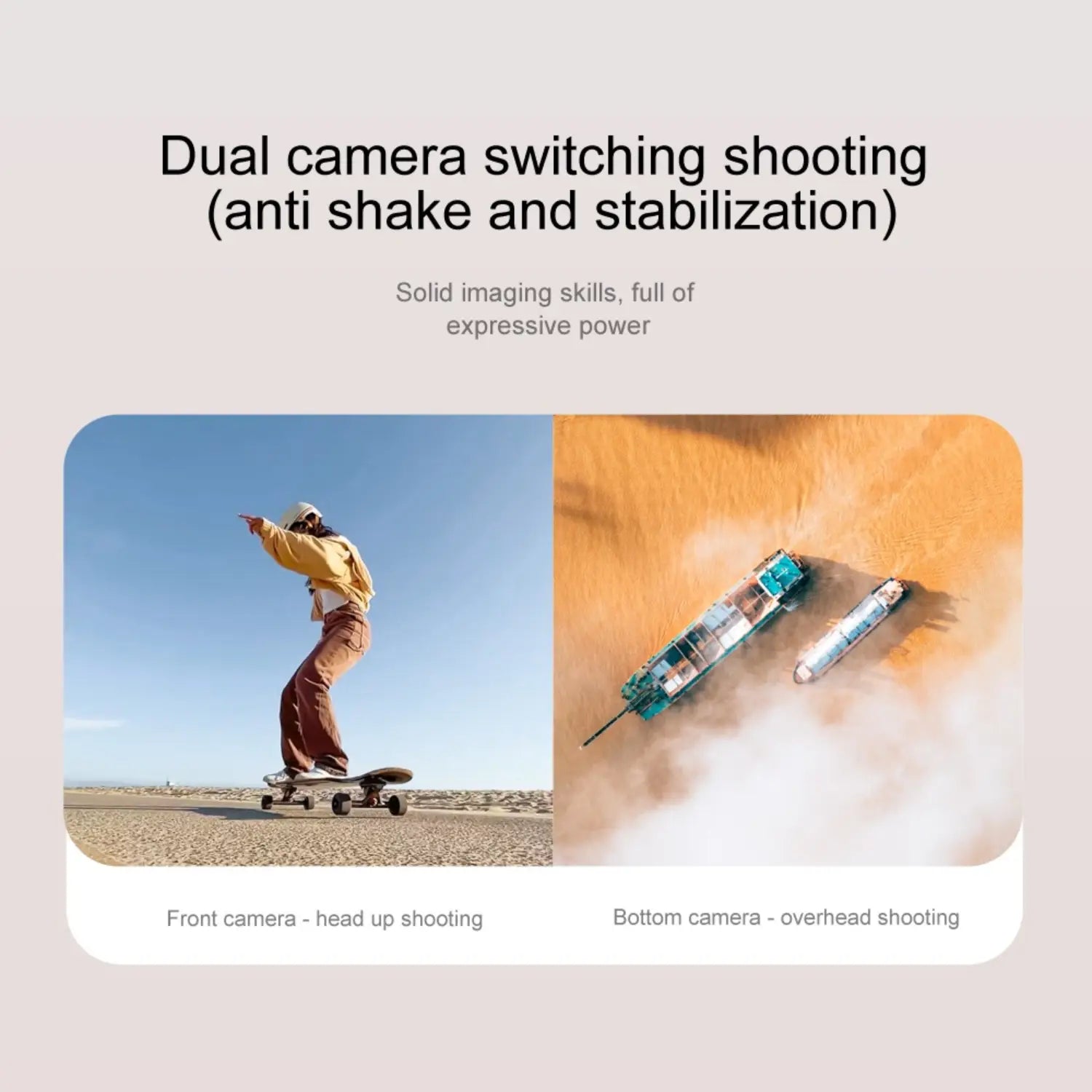 - 📷 Dual HD Camera – Capture stunning photos and switch between front & bottom views.