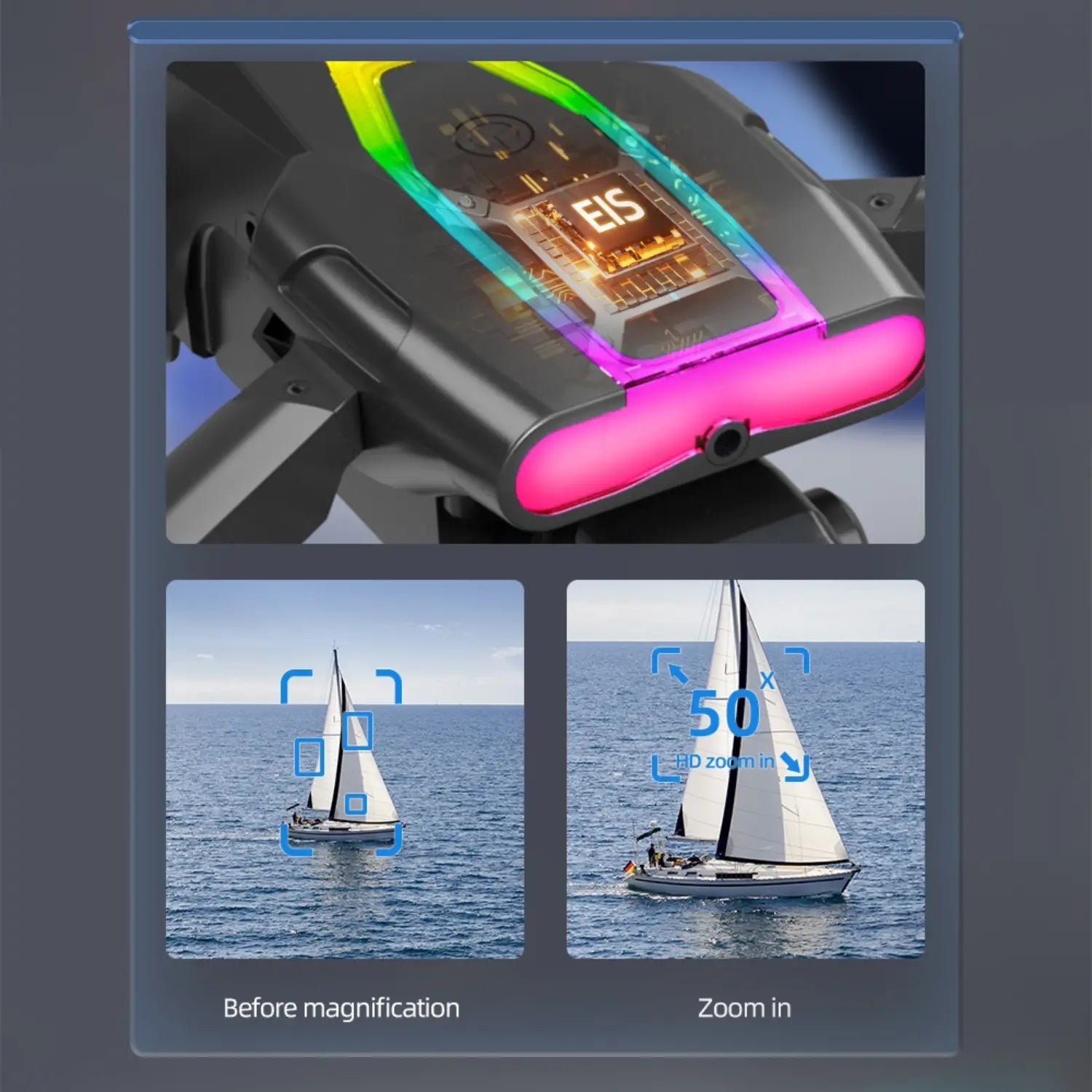- 8K High-Definition Camera: Capture crystal-clear photos and cinematic videos with the advanced 8K HD camera. The dual-axis gimbal ensures stable footage even in windy conditions.