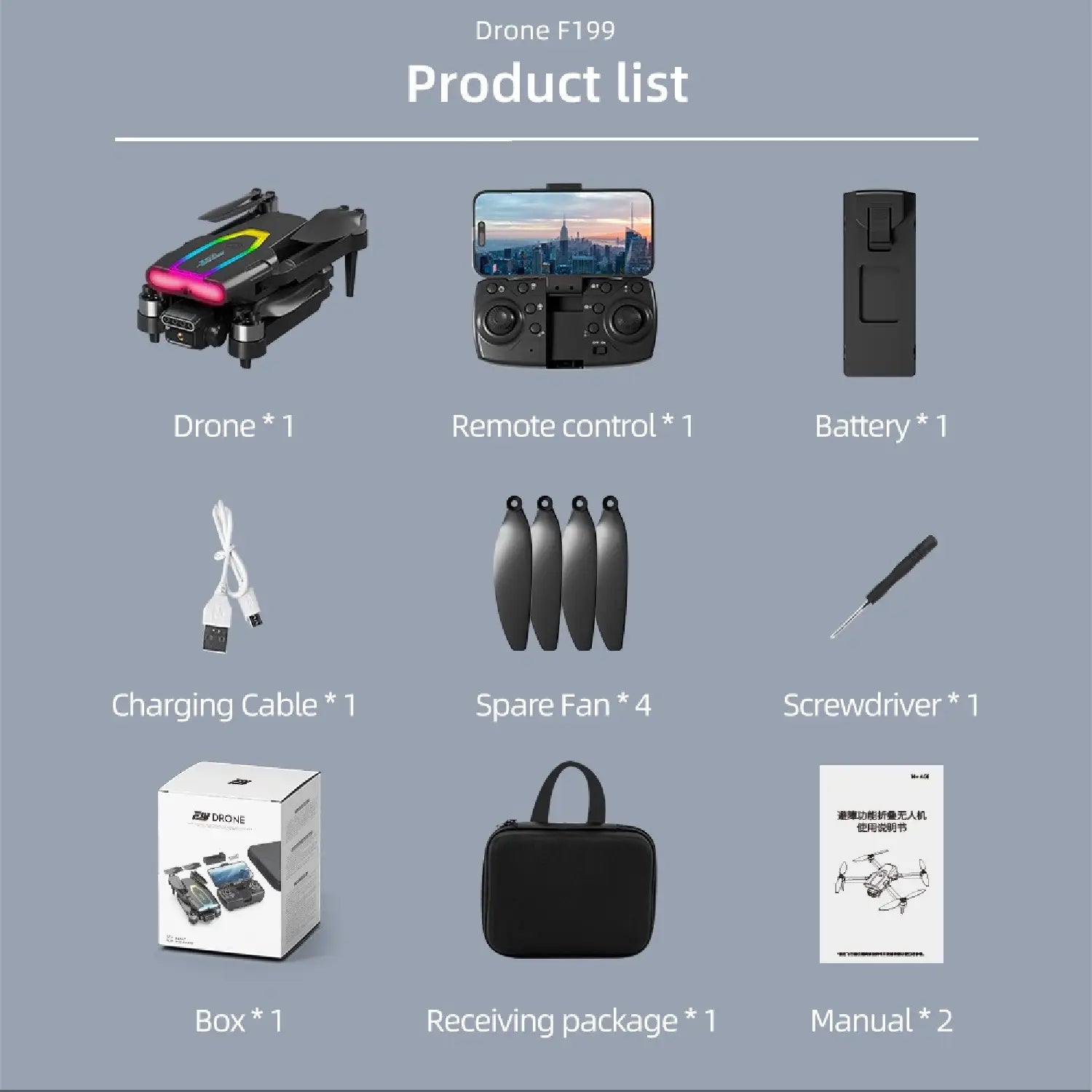 - Foldable & Portable Design: Lightweight and foldable, the F199 drone is ideal for travel, outdoor adventures, and on-the-go photography.