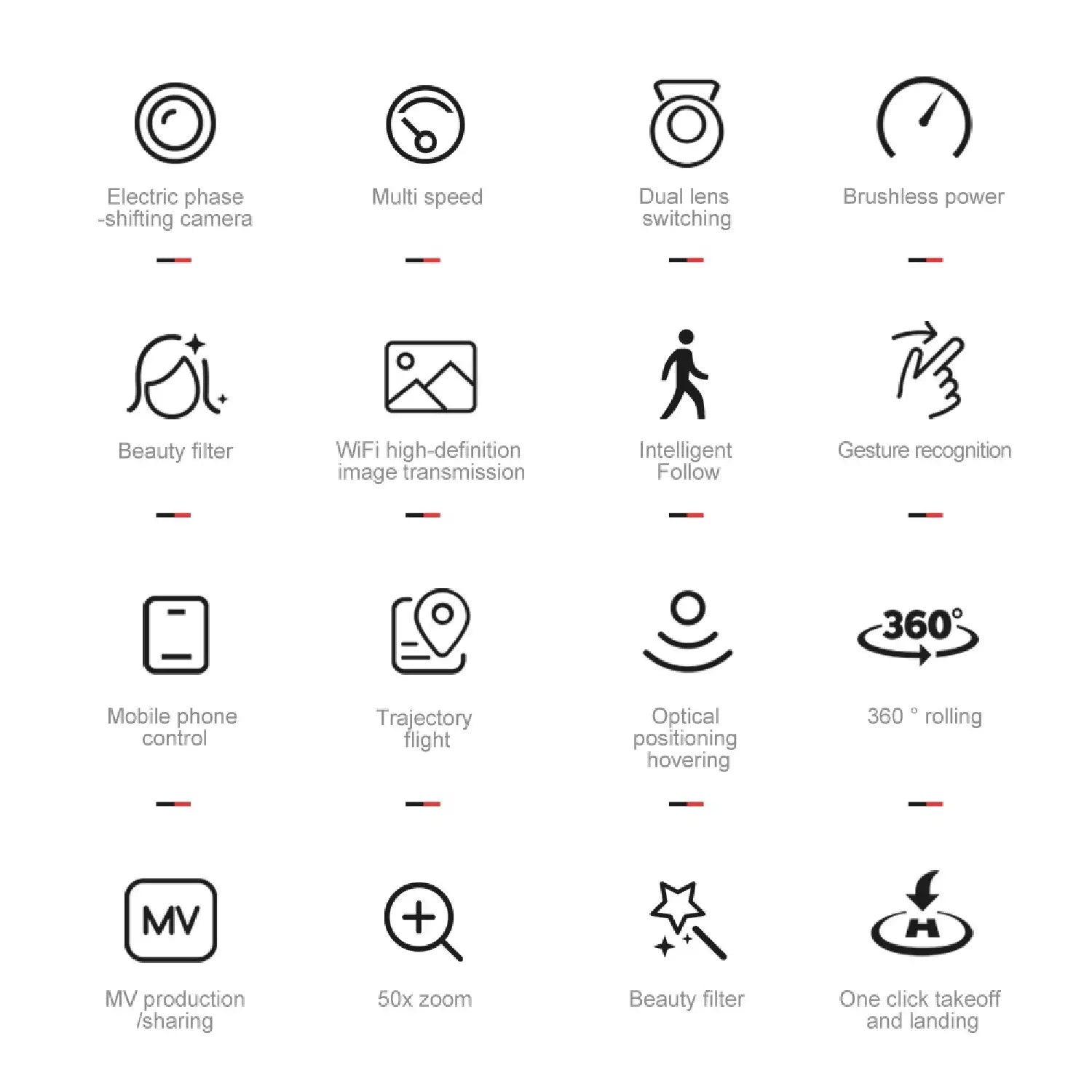 | Flight Modes | GPS, Follow Me, Waypoint, Return Home |