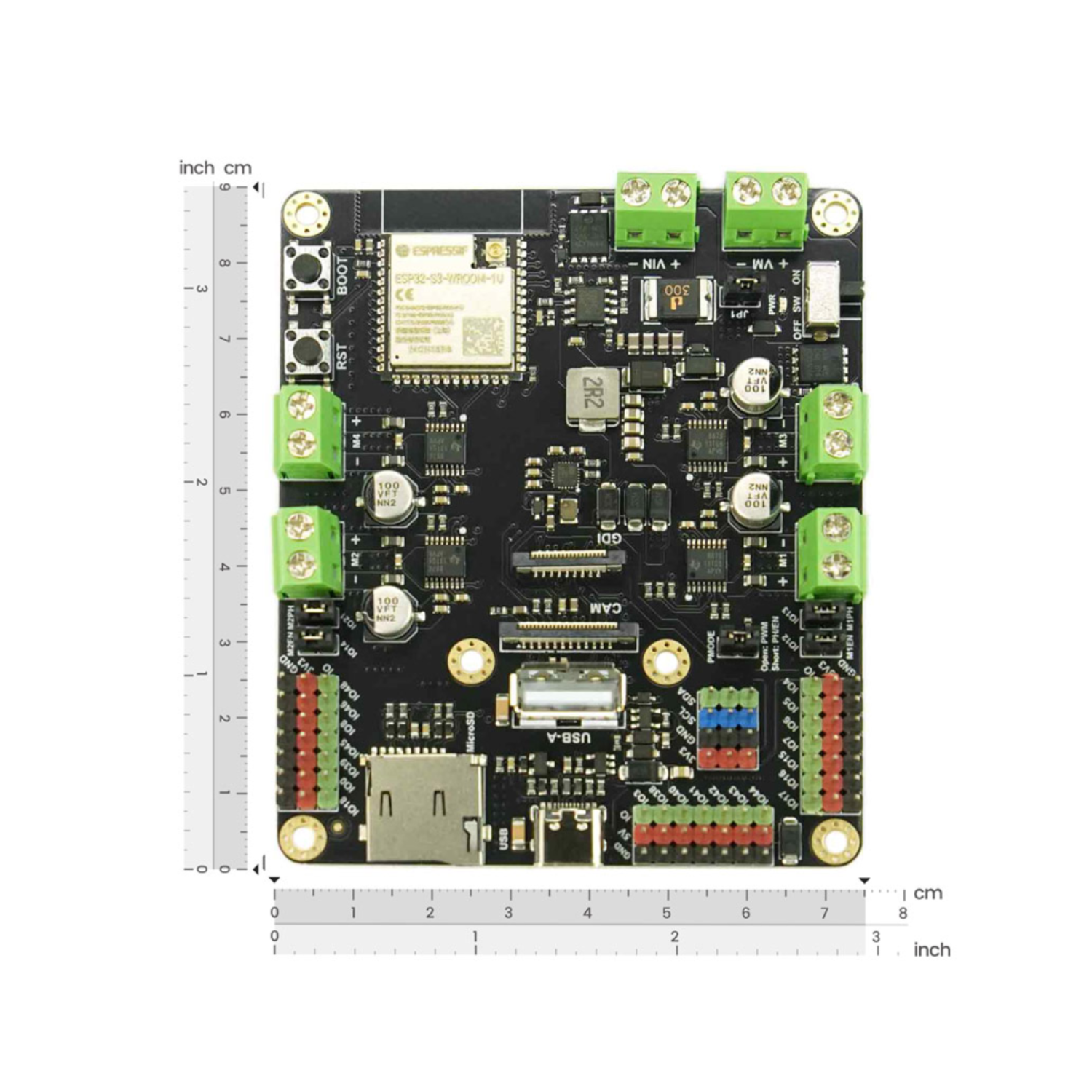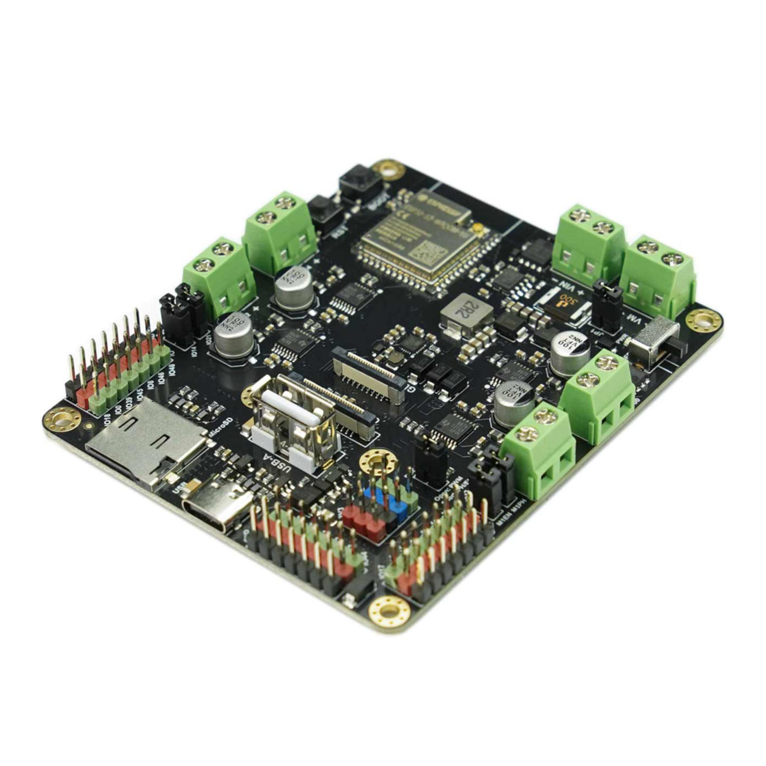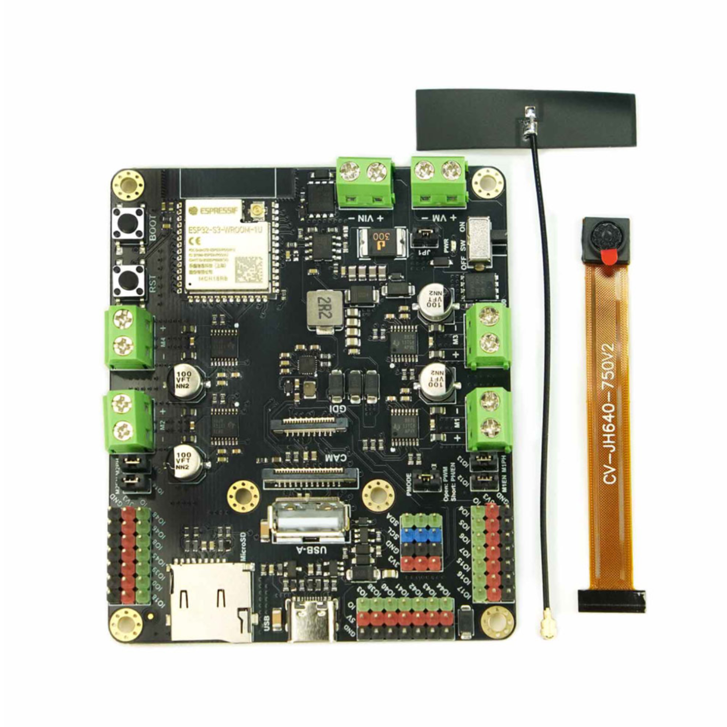 The Romeo ESP32-S3 emerges as a powerful and versatile development platform meticulously engineered to empower robotics innovators. At its core lies the robust ESP32-S3 microcontroller, delivering exceptional processing capabilities for complex robotic tasks. Distinguishing itself, this board integrates an onboard camera, unlocking seamless video transmission and enabling immersive first-person view (FPV) remote control for an enhanced user experience. Designed with flexibility in mind, the Romeo ESP32-S3 readily supports the creation of both agile 2-wheeled drive (2WD) and robust 4-wheeled drive (4WD) robotic platforms. Furthermore, its comprehensive array of data interfaces provides extensive connectivity options, facilitating the integration of a diverse range of sensors, actuators, and other intelligent components for advanced robot functionalities. To streamline the development process, the board offers broad compatibility with multiple popular programming languages and development environments, making it an accessible and efficient solution for both novice and experienced roboticists alike.