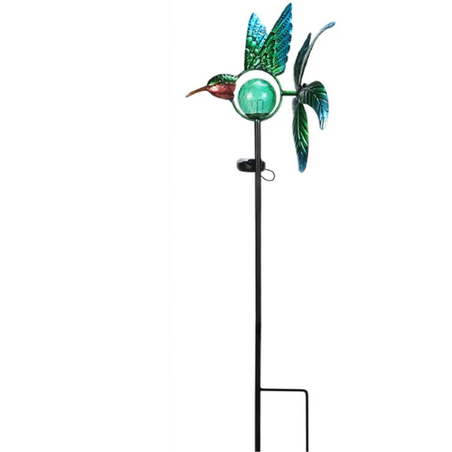- Designed with a decorative hummingbird shape featuring a metal spinning tail that spins with the breeze, shining in the sunlight. Perfect for a pathway, patio, lawn, and garden decor.