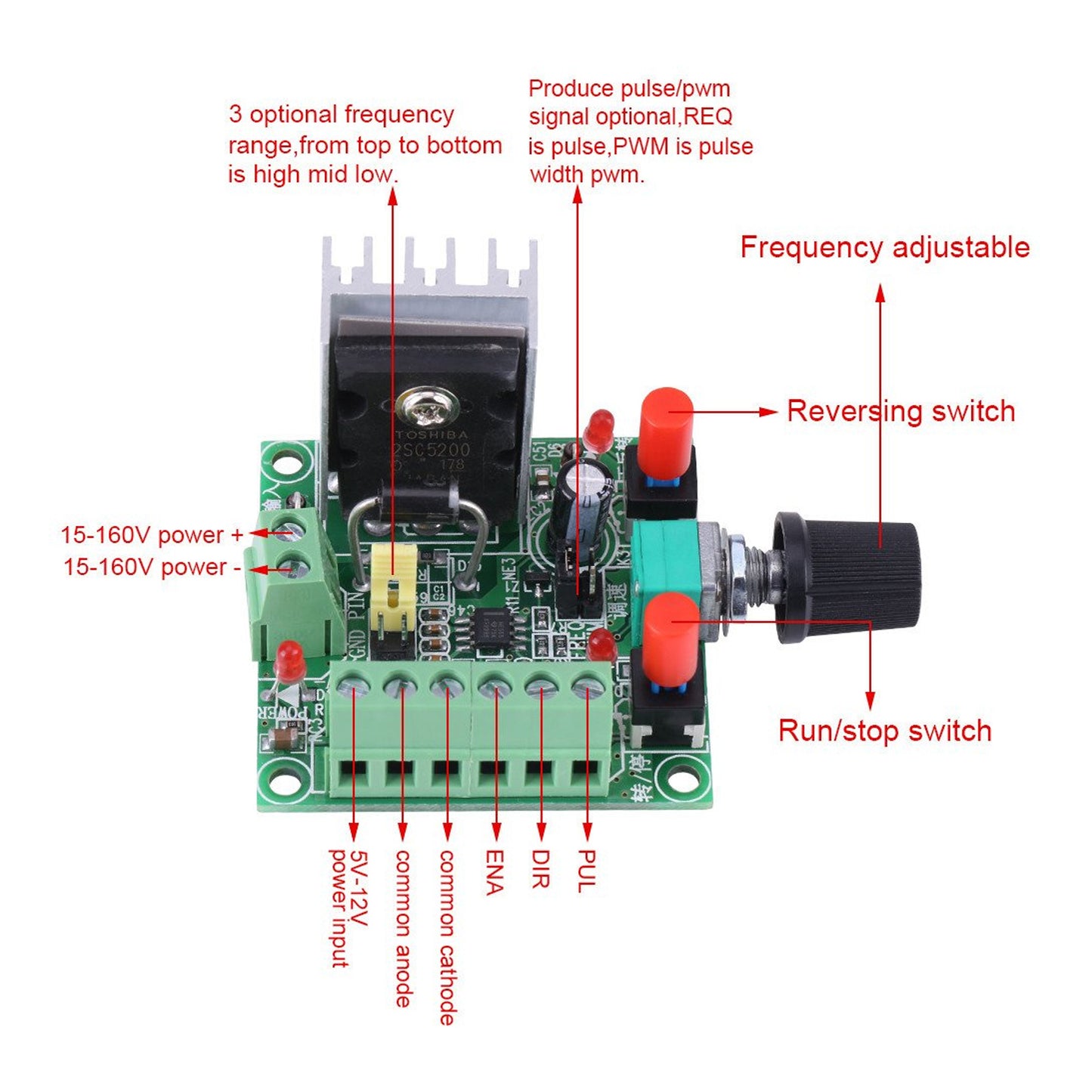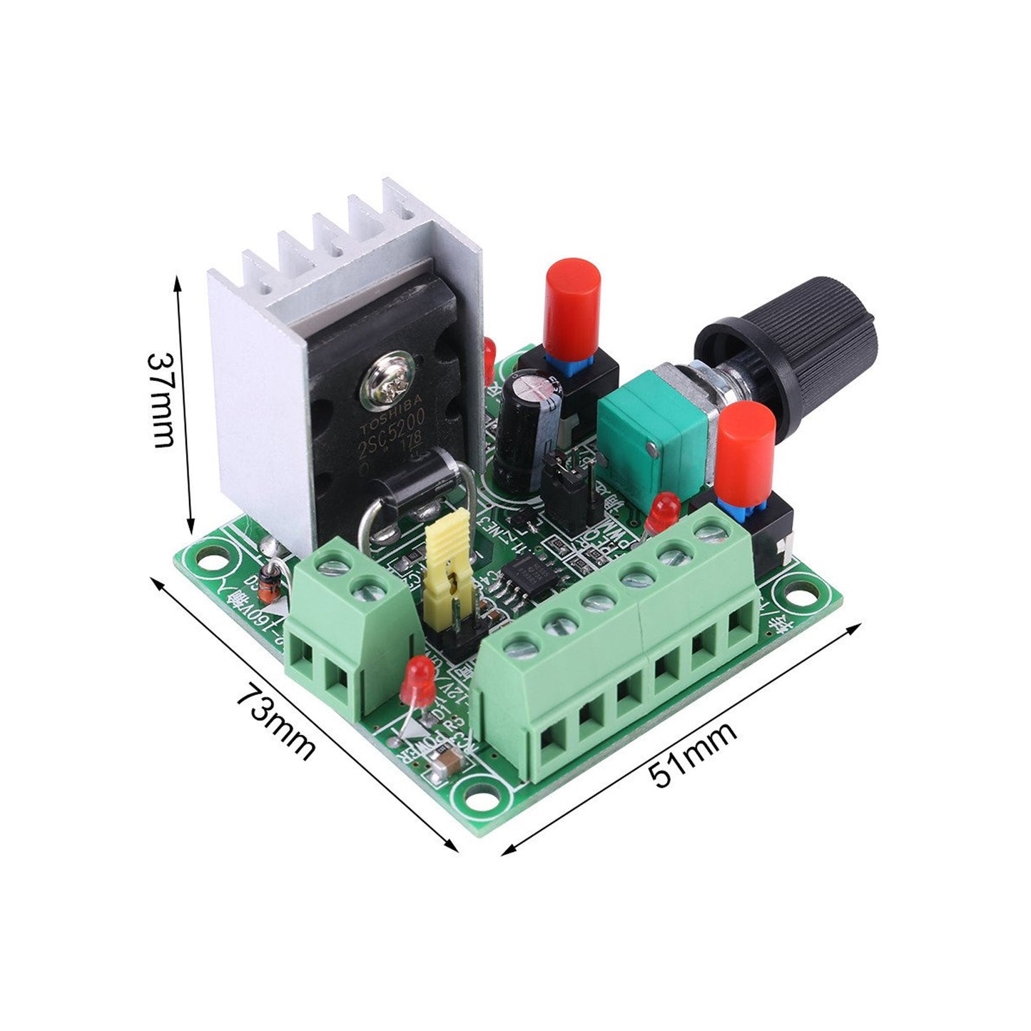 This Stepper Motor Controller Board is based on the TOSHIBA 2SC5200. This board can provide a 2.5 kHz-68 kHz frequency, power signal for the stepper driver. This board can be used to generate PWM signals for the stepper motor driver, it has onboard buttons for the CW and CCW rotation of the stepper motor. The speed of the motor can be varied through the onboard potentiometer. When the board generates a frequency pulse signal, the high and low-frequency signals can be selected by the onboard jumper. This module is supplied as a stepper drive signal. To control the stepper motor, but also must have the drive to use. The controller has a high, medium and low total of three types of frequency signals that can be used to select a jumper.