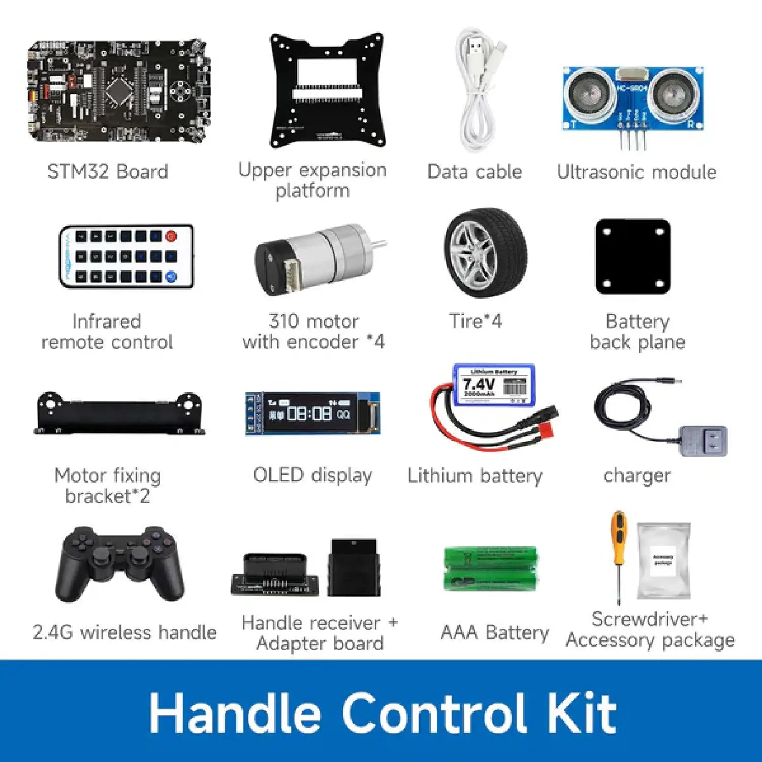 Handle Control Kit Includes PS2 wireless handle for remote manual driving.
