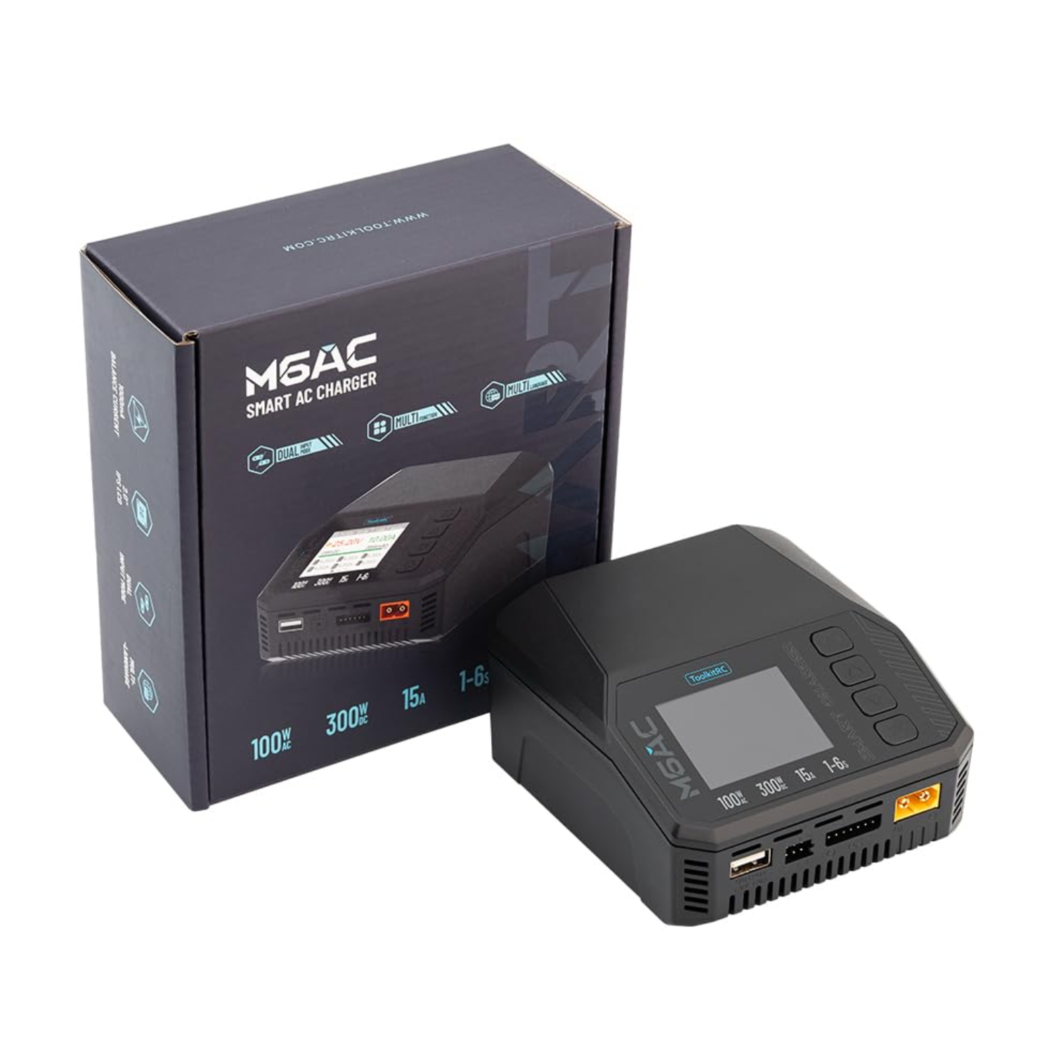 The ToolkitRC M6AC Battery Charger is a powerful yet compact smart charging solution designed for RC enthusiasts and hobbyists. With an impressive 150W AC input and up to 300W DC power output, it delivers efficient and reliable charging performance for a wide range of batteries. Supporting 1–6S LiPo, LiHV, LiFe, Li-ion, NiMH, and Pb (lead-acid) batteries, this charger ensures maximum flexibility across different applications, from drones and RC cars to boats and planes.