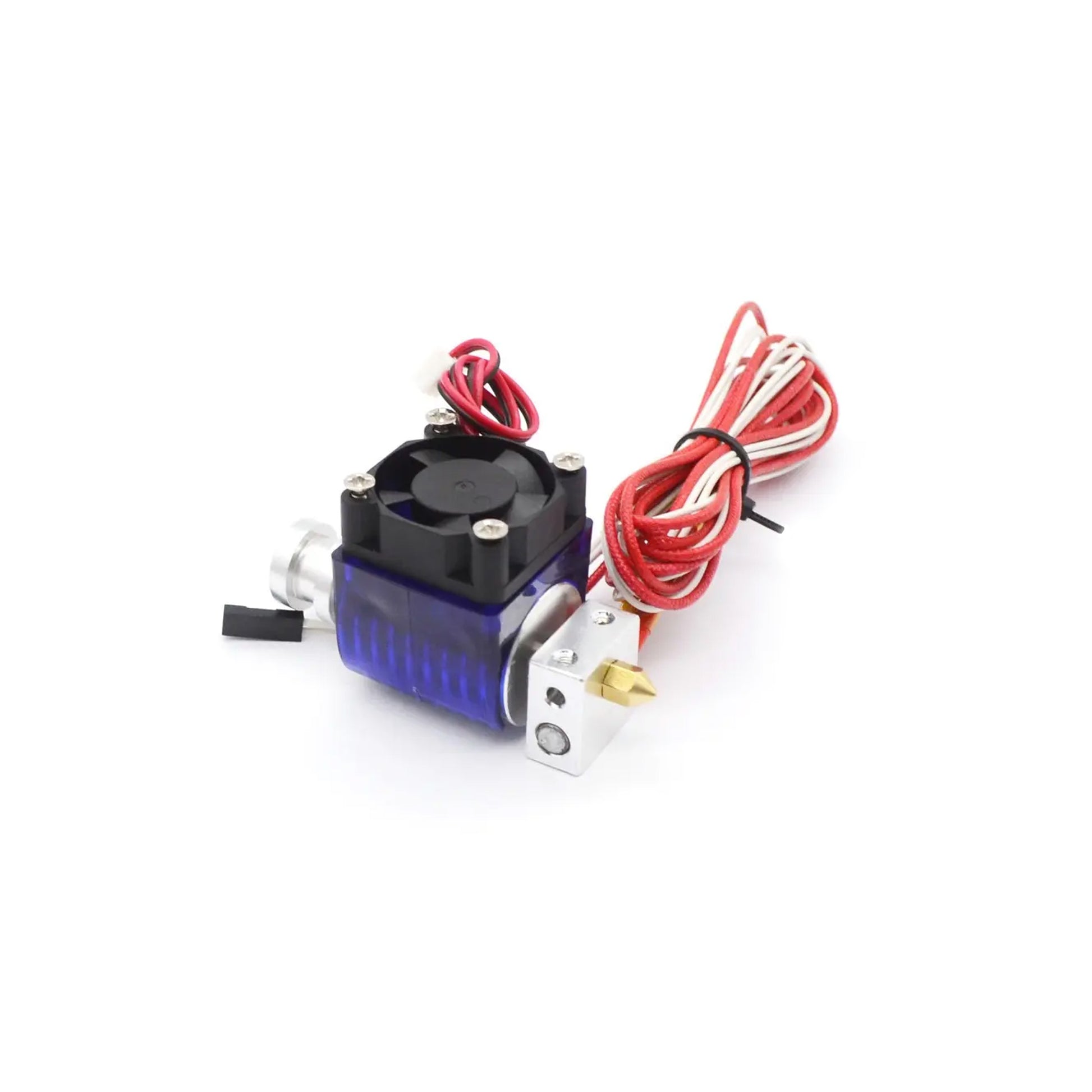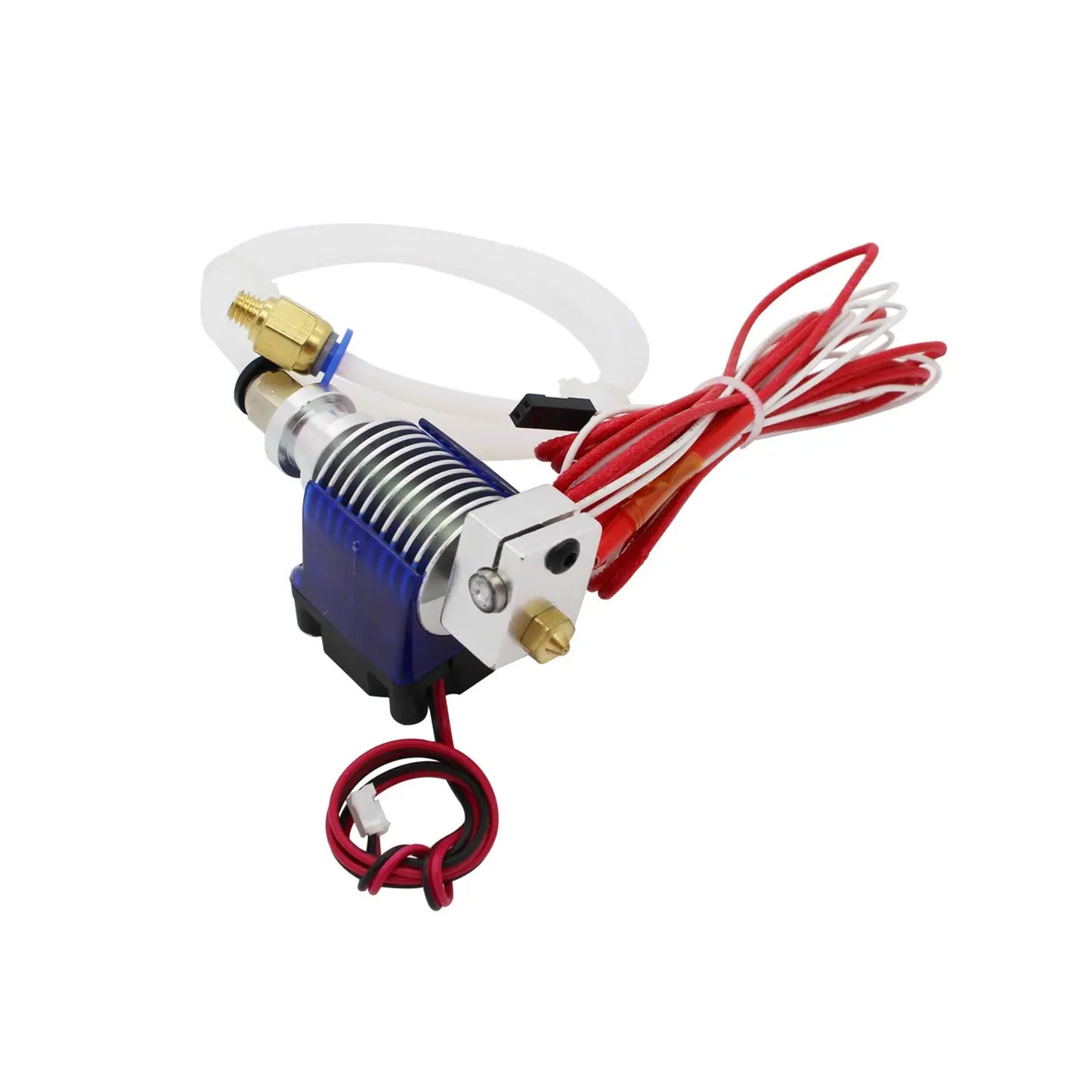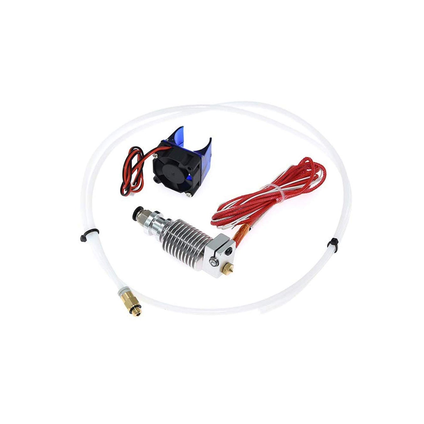 This complete V6 Hotend Full Kit for 1.75 mm filament 0.4 mm Nozzle contains the same signature high-temperature performance for high-temp printing, as well as increased functionality for printing soft and flexible filaments. This kit contains the old thermistor, heater block, sleeving, and cooling fan with holder.