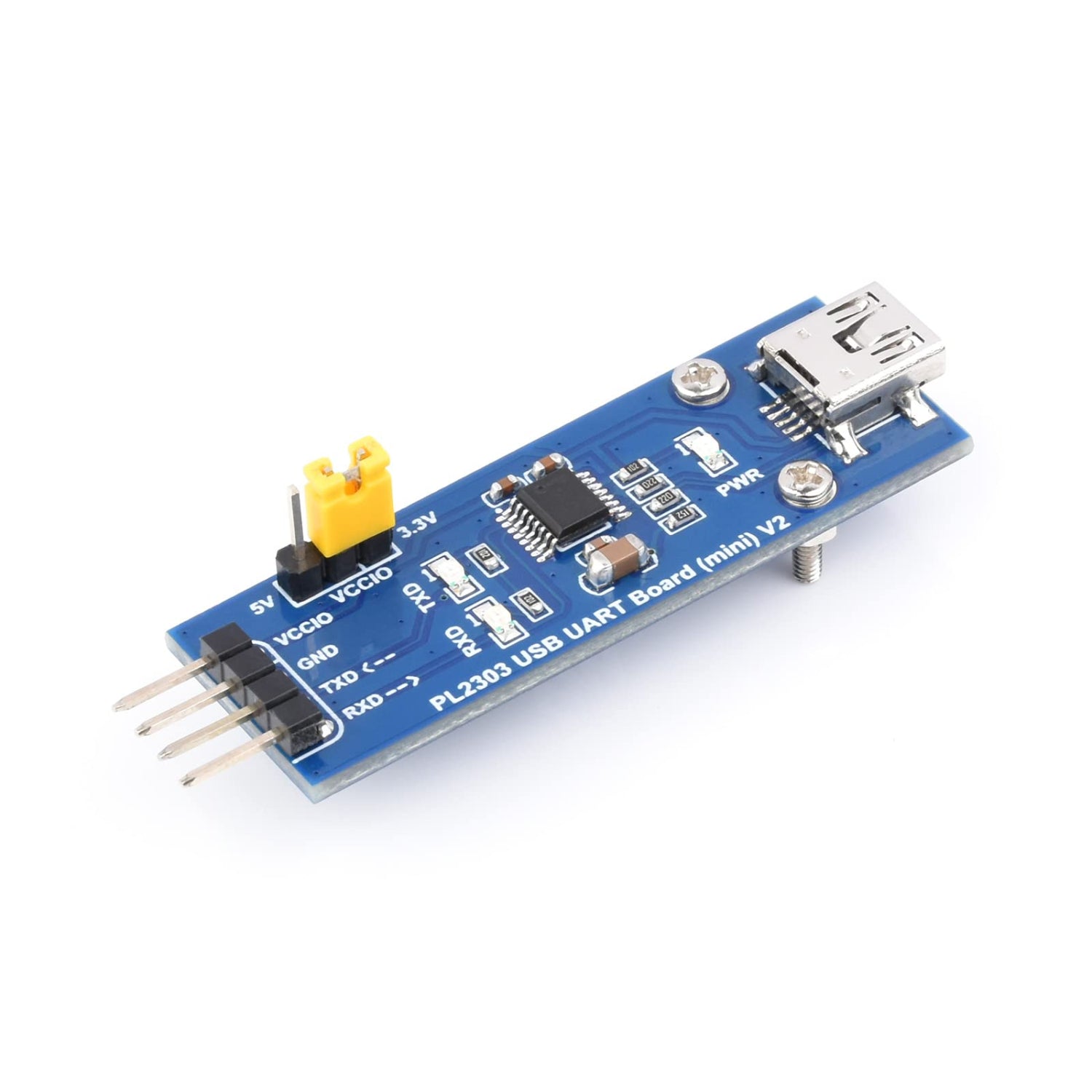 The Waveshare PL2303 USB to UART (TTL) Communication Module. This compact and reliable adapter board is your essential tool for connecting microcontrollers, development boards like Arduino, ESP32, or Raspberry Pi, and other TTL-level devices directly to your computer via a convenient Mini USB port.