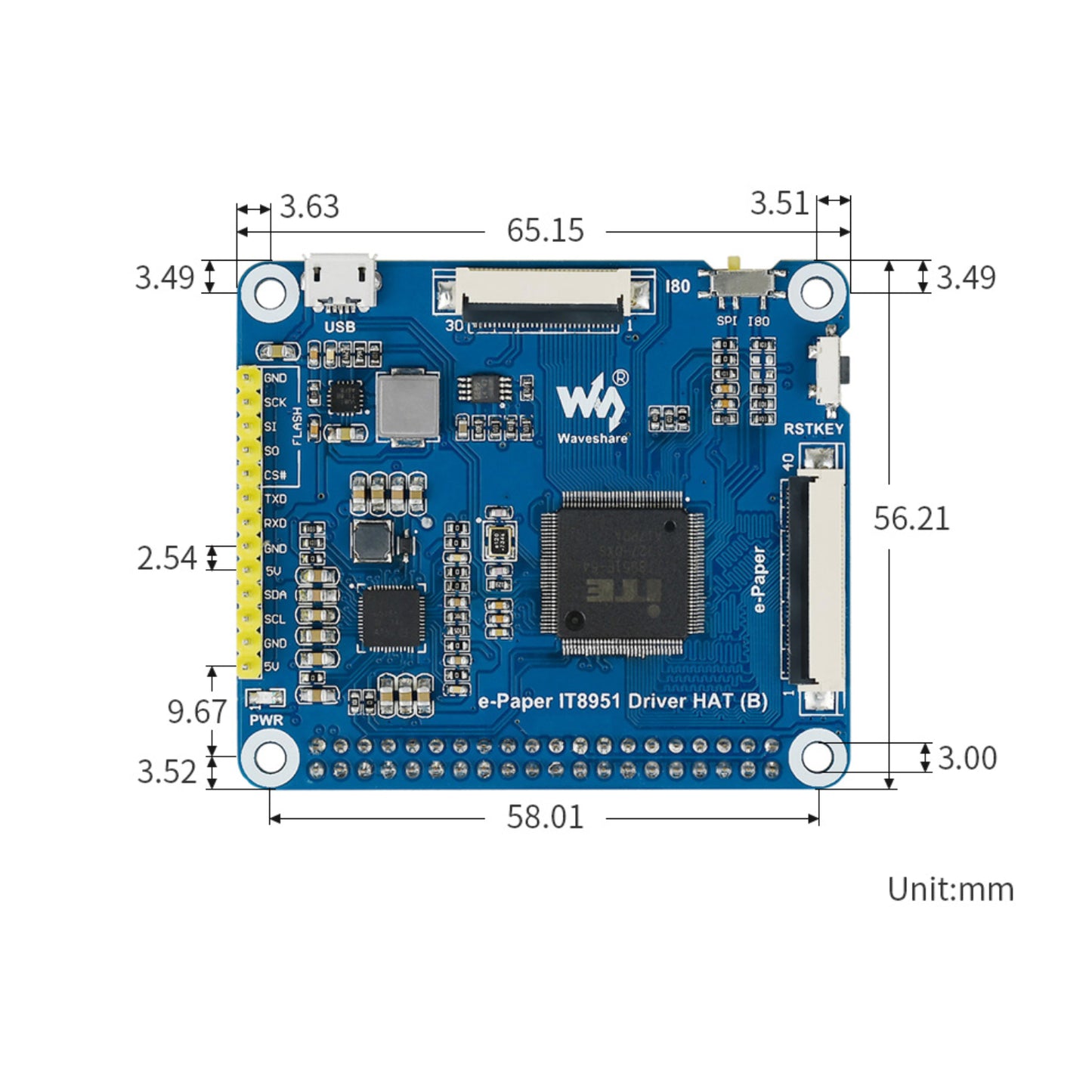 - USB/SPI/I80 interface, for connecting with controller boards like Raspberry Pi/STM32, etc.