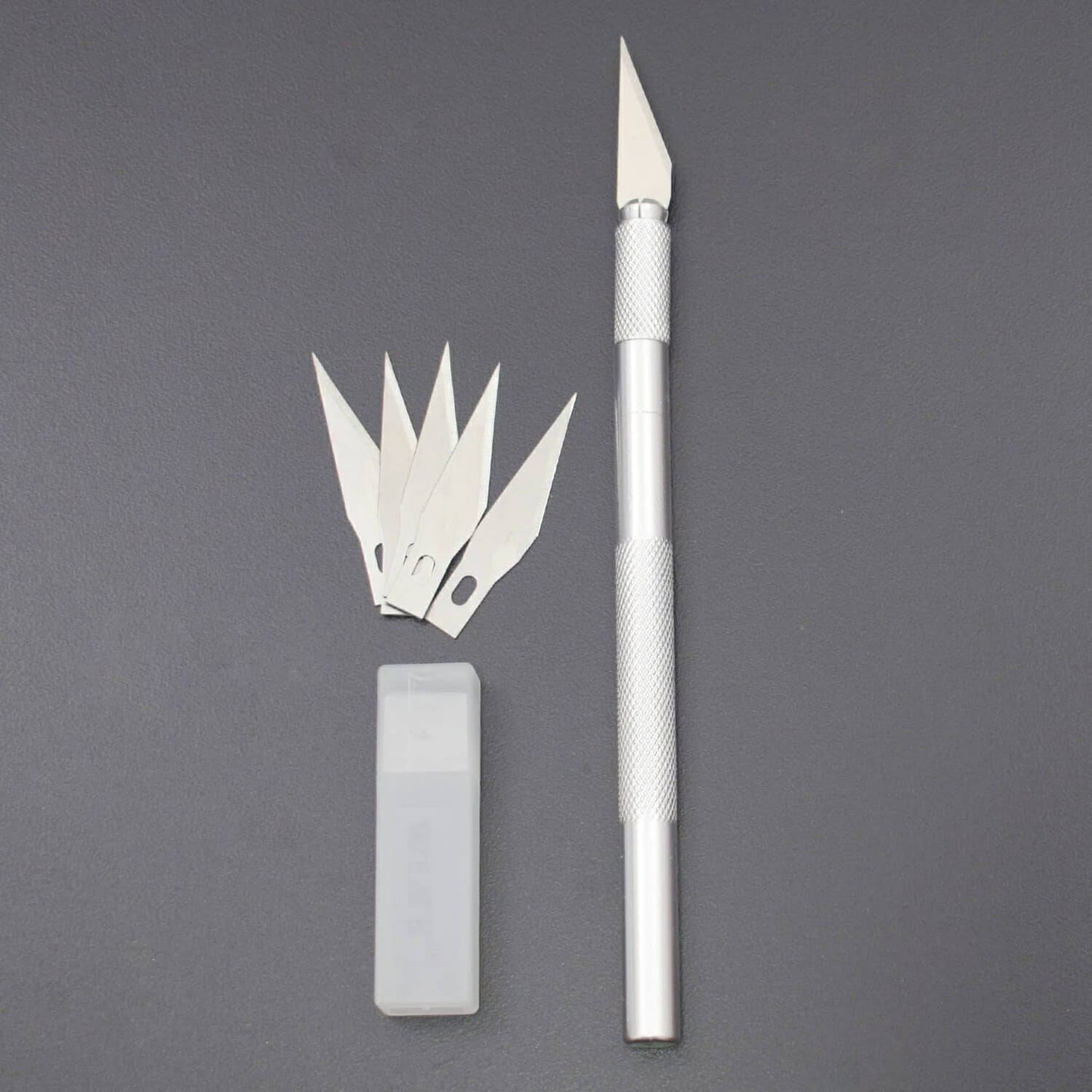 This is a WLXY-9309 aluminium precision art knife model carving graver knife with 5 blades. It is great for delicate, precision cutting, trimming, and stripping. By using this you can cut paper, plastic, balsa, thin metal, cloth, film, and acetate. It comes with a lightweight handle and includes extra Blades.
