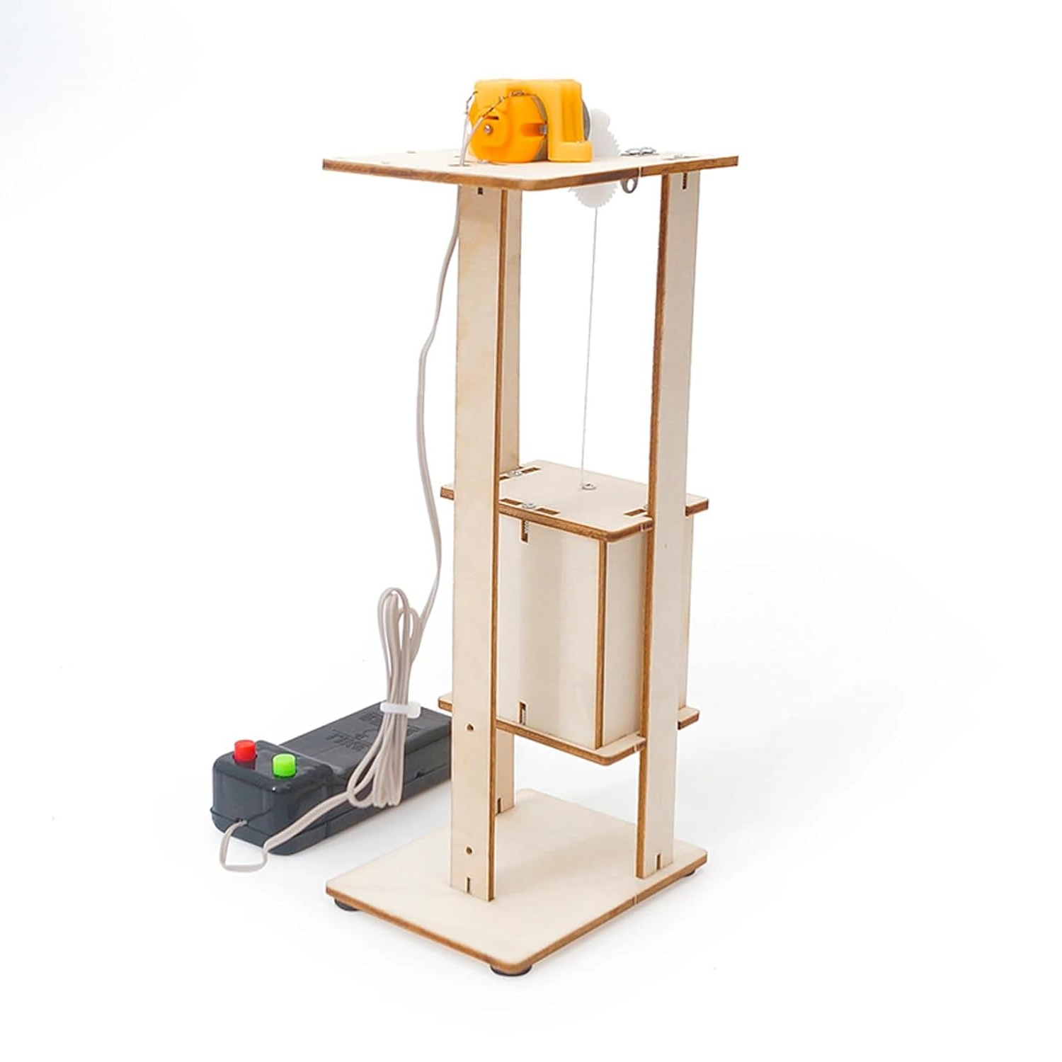 1 x Wood Assembly DIY Electric Lift Kids Gifts Science Toys Experiment Material Kits Tool Elevator Assemble Kit For Education