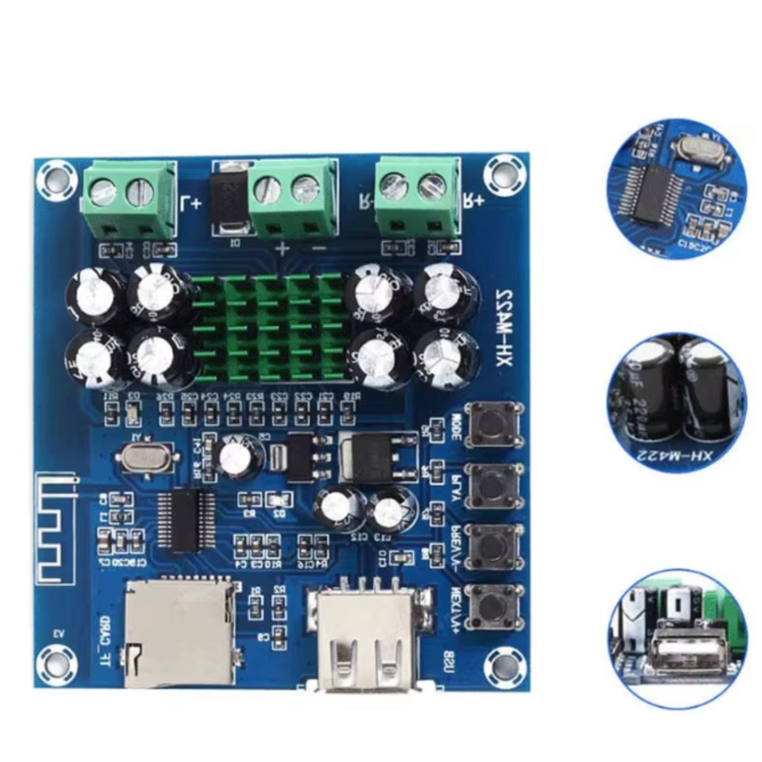 1 x XH-M422 Bluetooth Amplifier Board U Disk TF Player Amp Boards 12 To 24V DC TPA3116D2 XH-M422 Dual Channel Amplifier Integrated Bluetooth/USB Flash Drive/TF Card Playback