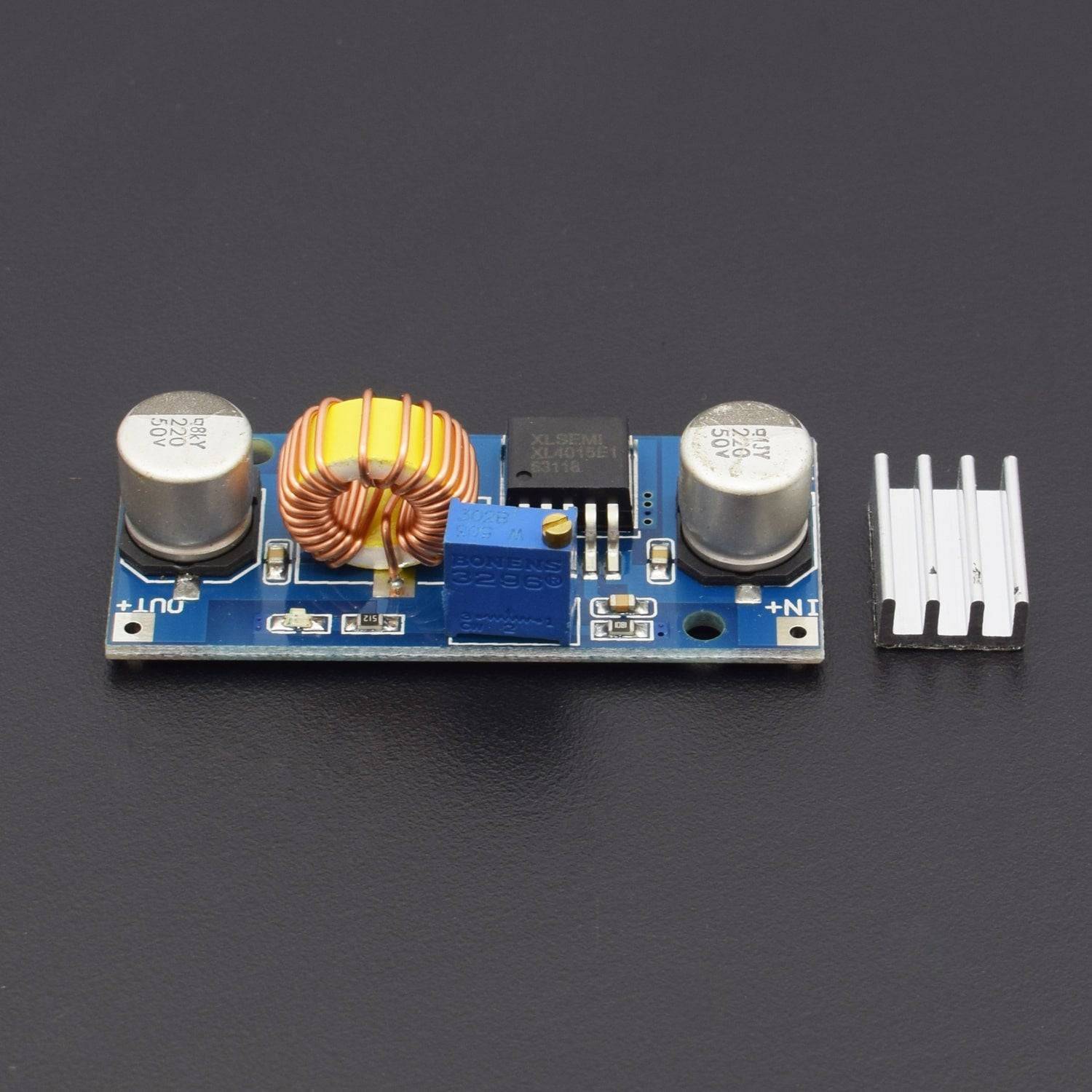 The XL4015 5A DC-DC Step-Down Module is a versatile, high-efficiency buck converter that can regulate voltage down from a higher DC input to a stable, adjustable output. It supports constant current (CC) and constant voltage (CV) modes, making it suited for LED driving, lithium battery charging, bench power supplies, and general electronics regulation.