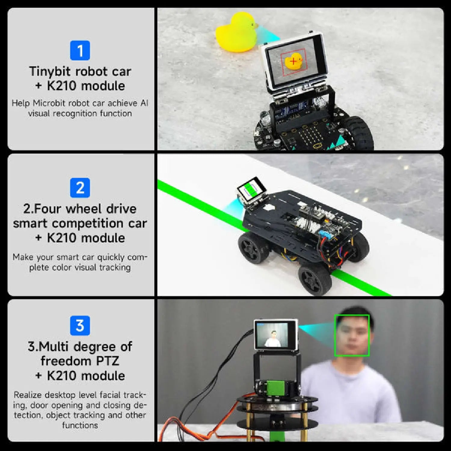 - Module + 2DOF Electric Platform + Control Board – Full AI vision + motion control kit