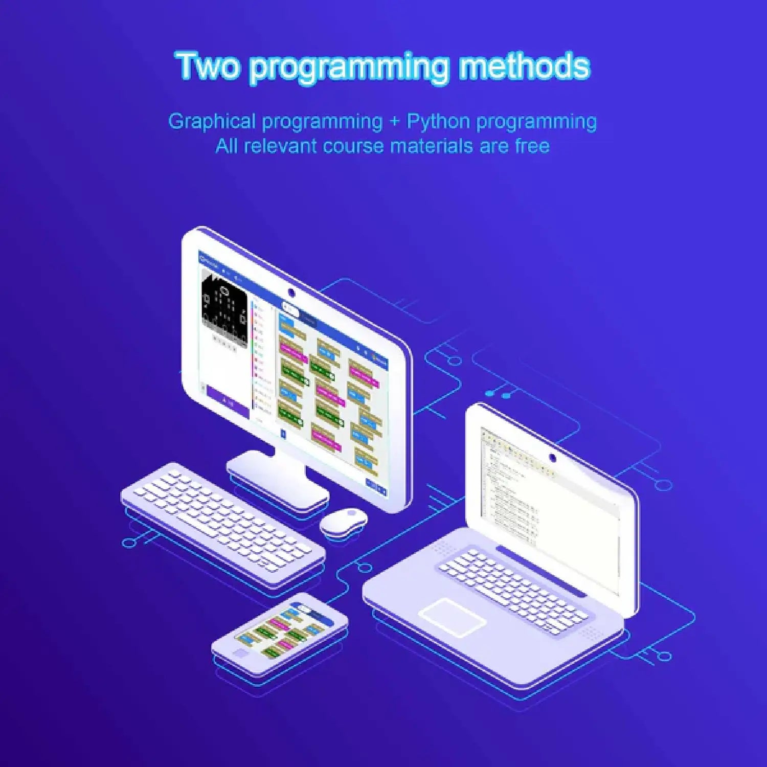 - 🔧 Expandable with Super:bit – Additional ports for motors, sensors, and LEDs.