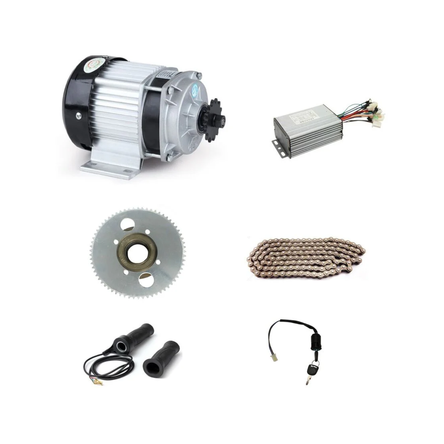 The Yalu BM1418ZXF 350W 48V Brushless Motor Kit delivers efficient and reliable electric propulsion. This complete kit includes a high-performance brushless motor, controller, brake levers, thumb throttle, and speed sensor. Experience smooth, quiet rides and speeds up to 35 km/h with its durable copper winding and aluminum casing.