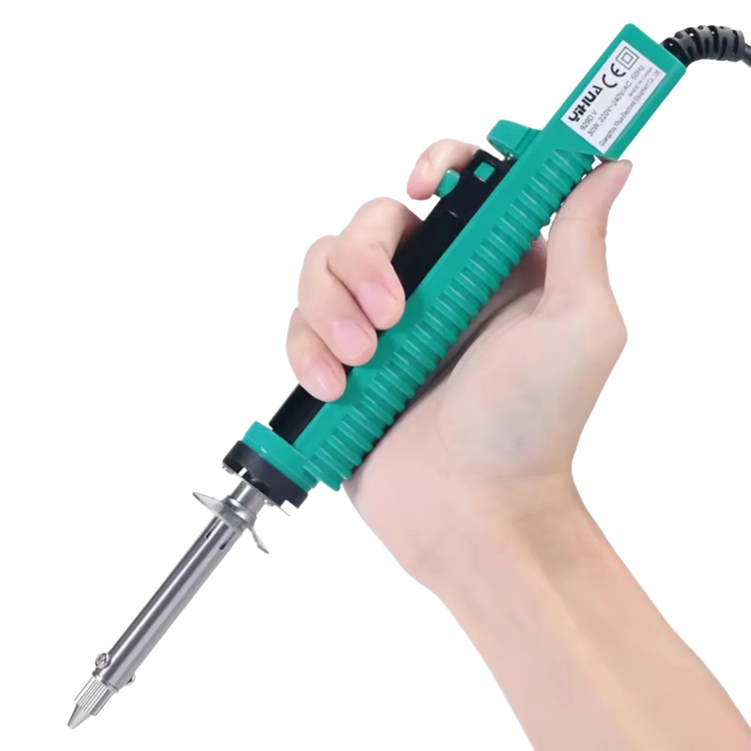 This is a plug-and-play desoldering iron. Plug in the power plug, allow the desoldering iron to preheat for about 3 minutes and you are ready to go. The unique YIHUA heating system combined with a strong desoldering pump ensures that you experience uninterrupted desoldering.