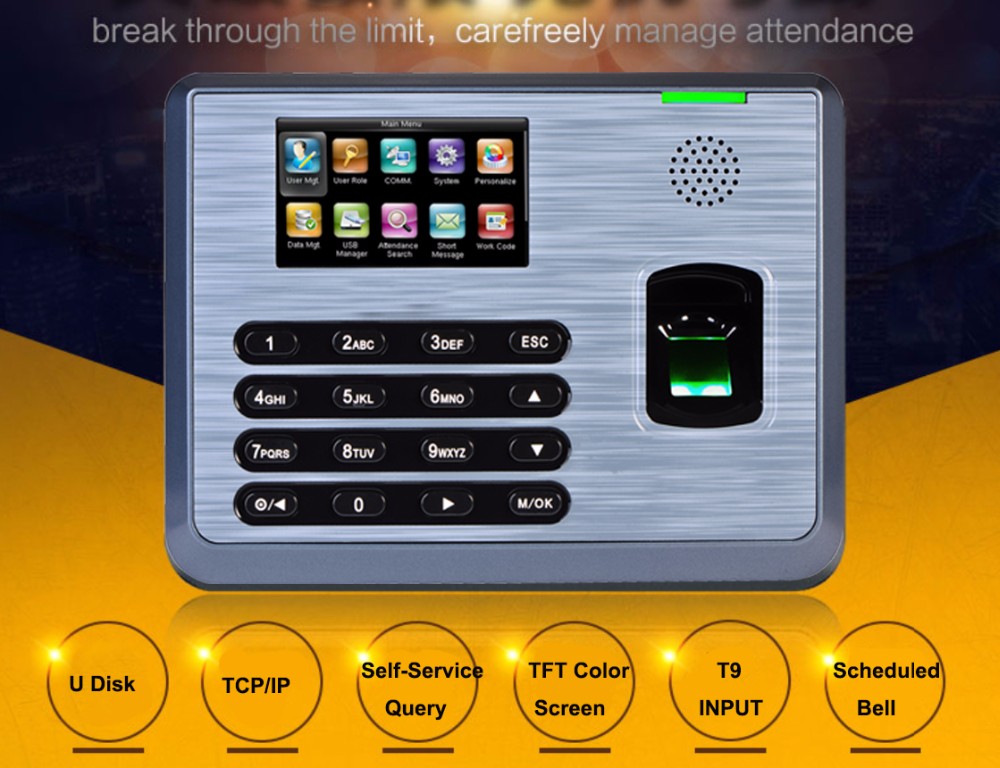 The TX628 Revolutionize your attendance system with a biometric fingerprint reader designed for both precision and ease of use. This device leverages advanced algorithms to ensure reliable accuracy and exceptional match speed, driven by the fastest fingerprint matching business algorithm and a high-quality optical sensor.